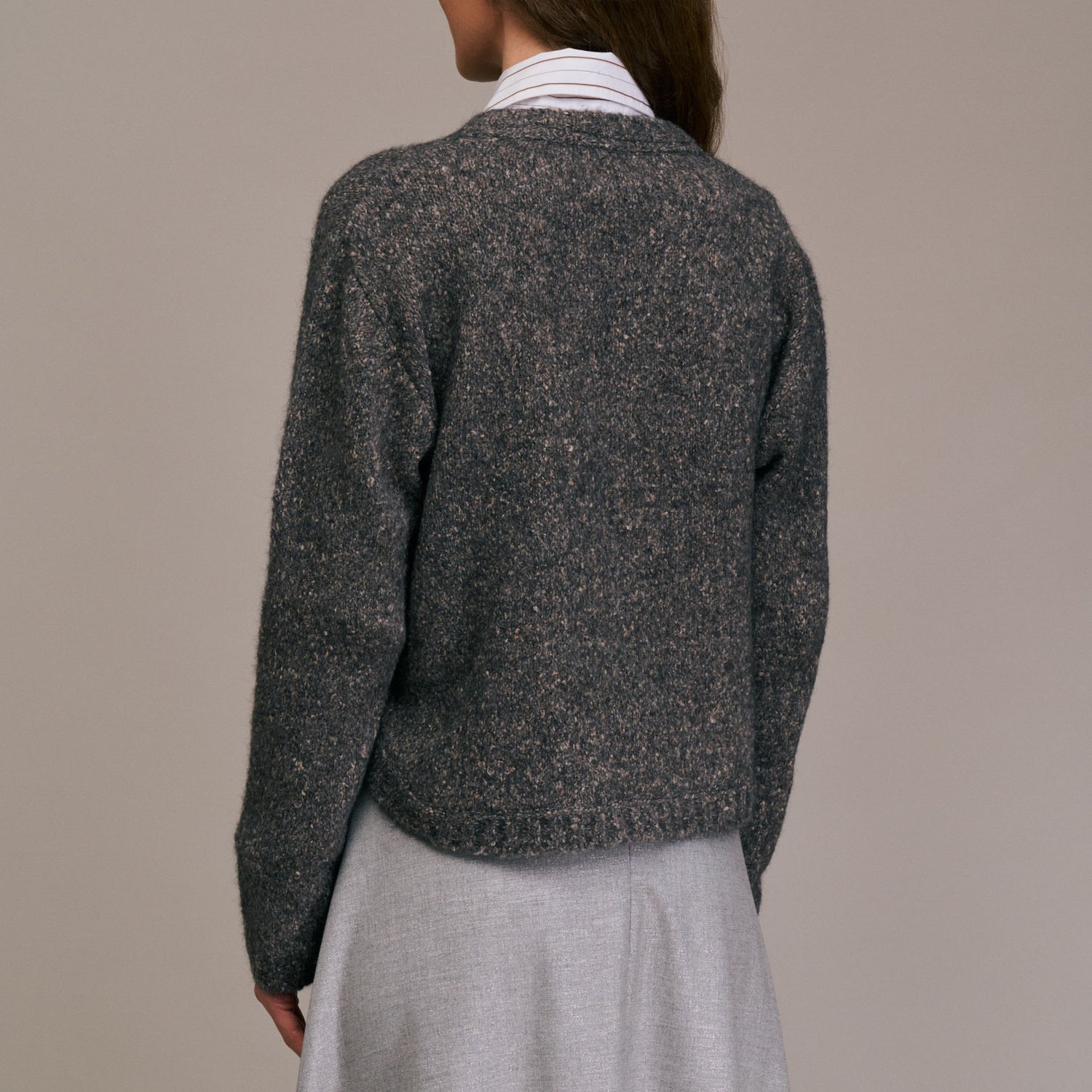 DIEGA Pivao Marl Crop Button Knit in Grey