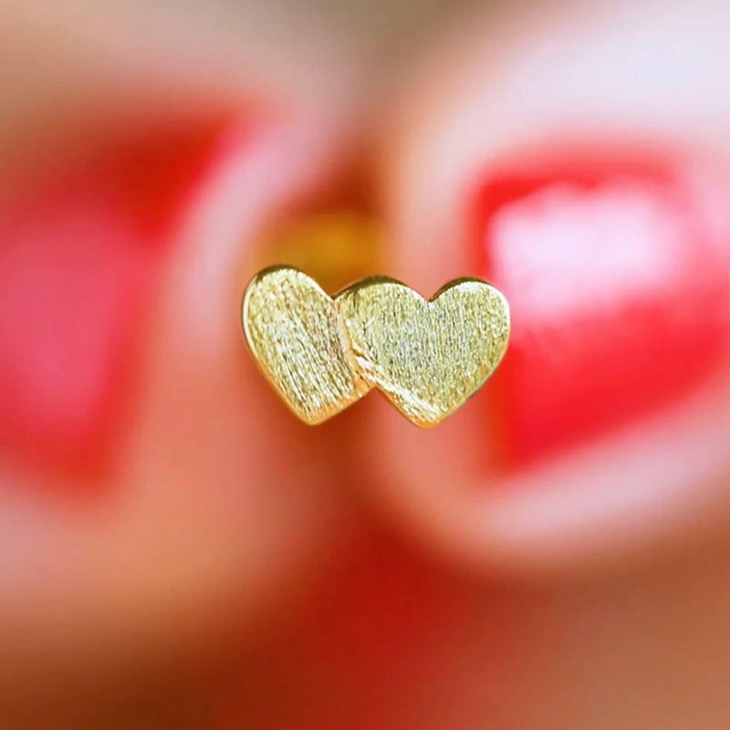 Why have one heart when you can wear two? This Single Domino Heart Earring, crafted in Gold plated sterling silver 18K, double the charm to your look. A bold and playful statement piece that's perfect for showing off your unique style