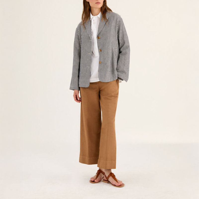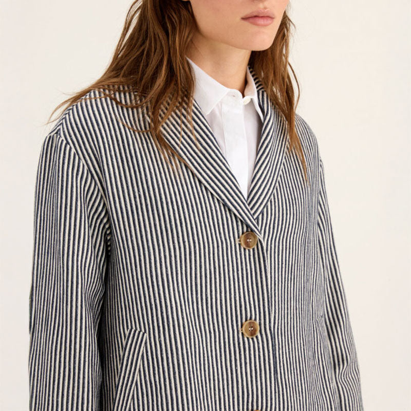 Effortlessly polished, this single-breasted linen/cotton jacket in classic blue offers a smart, breathable layer for warmer days. Lightweight, tailored, and easy to style—perfect for work or weekends.