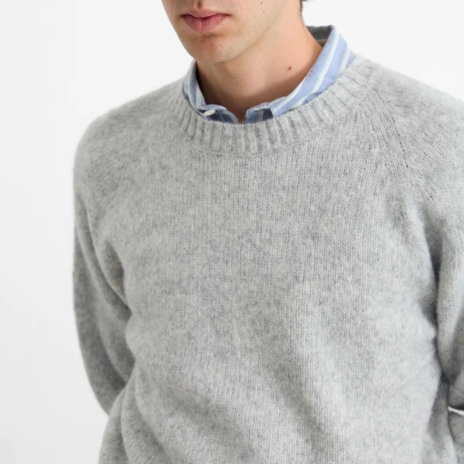 Soft, cosy, and effortlessly refined. This light grey crewneck sweater is crafted from a luxurious wool and alpaca blend, giving it a fluffy, slightly fuzzy texture with a warm, lightweight feel. Made in Portugal with quality craftsmanship.