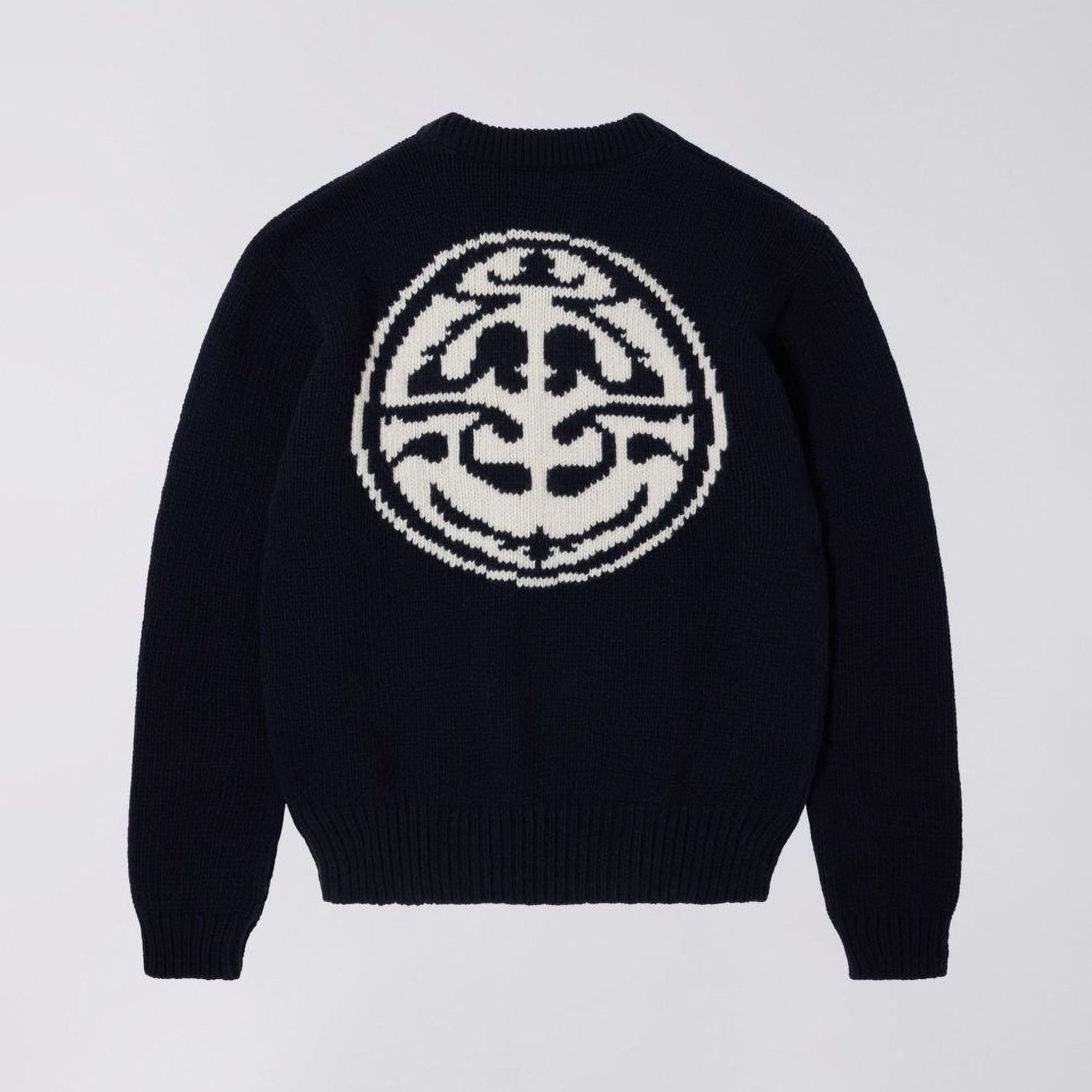The standout feature is a striking beetle jacquard design on the back, adding graphic flair to this silhouette. Finished in a Navy / Off White colourway, this combines simple and cool, into the perfect sweater to keep you toasty all winter.