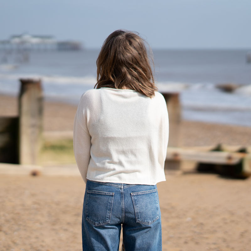 COLLEN & CLARE Egg Lightweight Merino/Cashmere Mix Crop Knit in Ivory