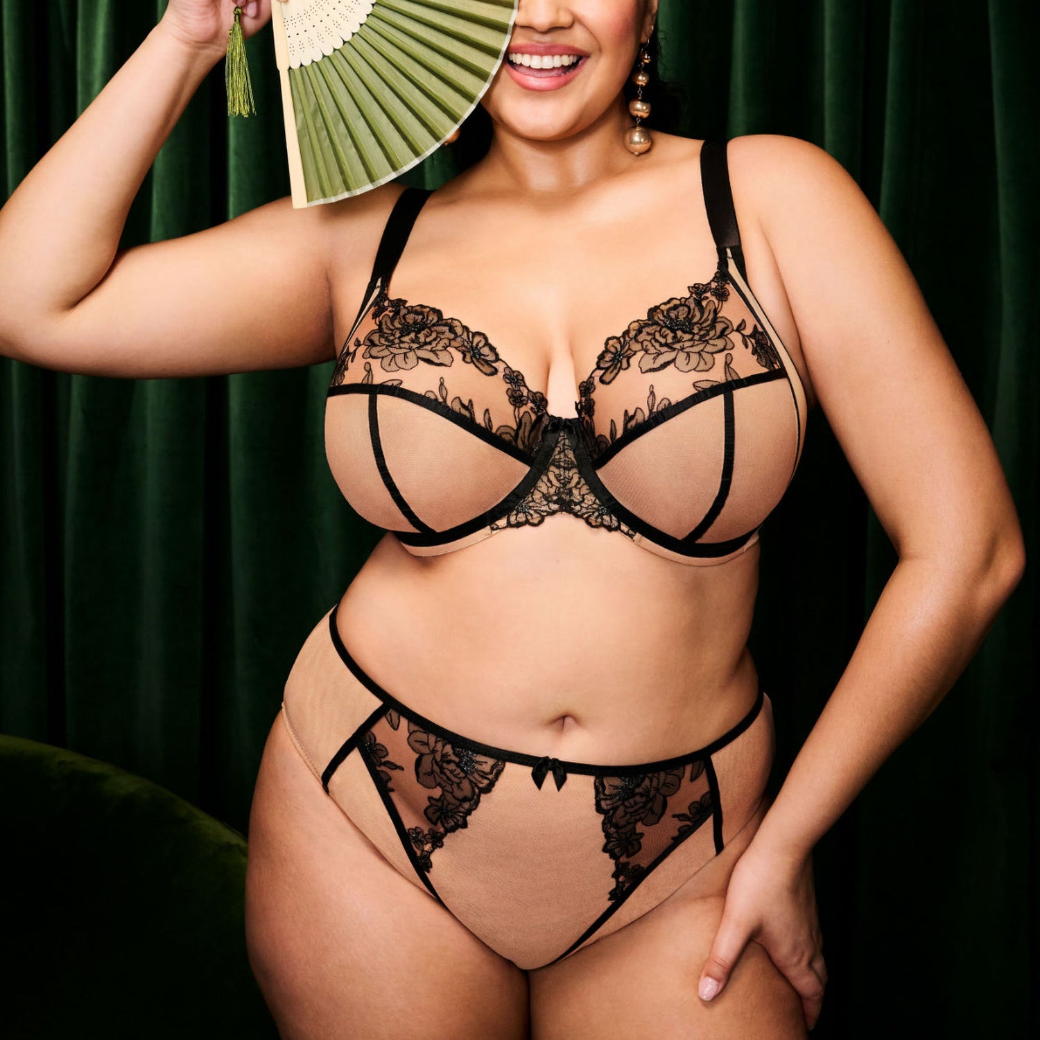 Meet Elomi’s Teagan High Leg Brief in the essential Café Au Lait hue. Designed with a double layer of stretch mesh across the front, sides and back for all-day comfort and support. The precision-printed embroidered front panels, laced with soft metallic yarns that shimmer with every move, make this brief a true showstopper