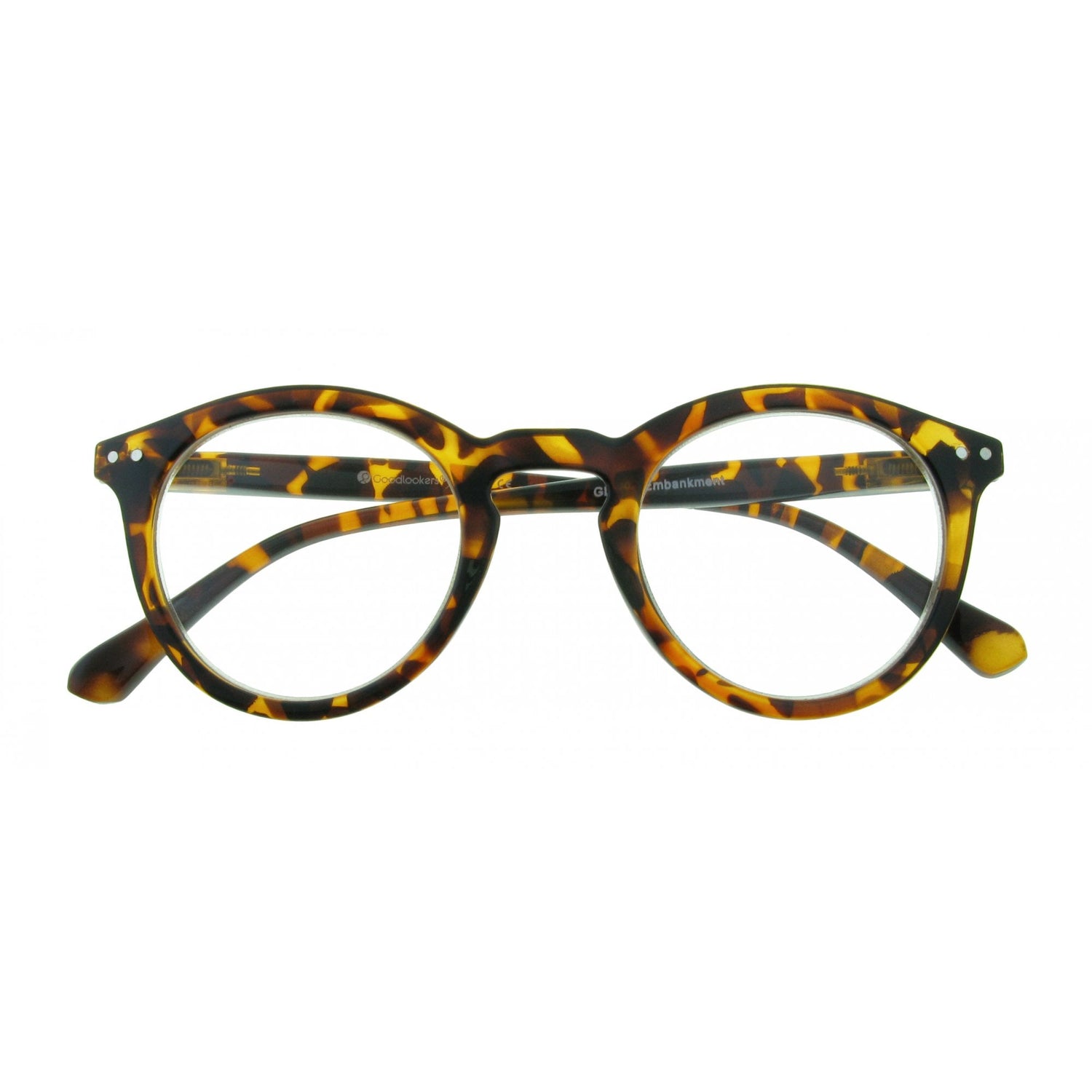 A stylish round frame finished in a shiny tortoiseshell pattern. Complete with sprung hinges for extra comfort and a grey felt Goodlookers carry pouch for safekeeping.