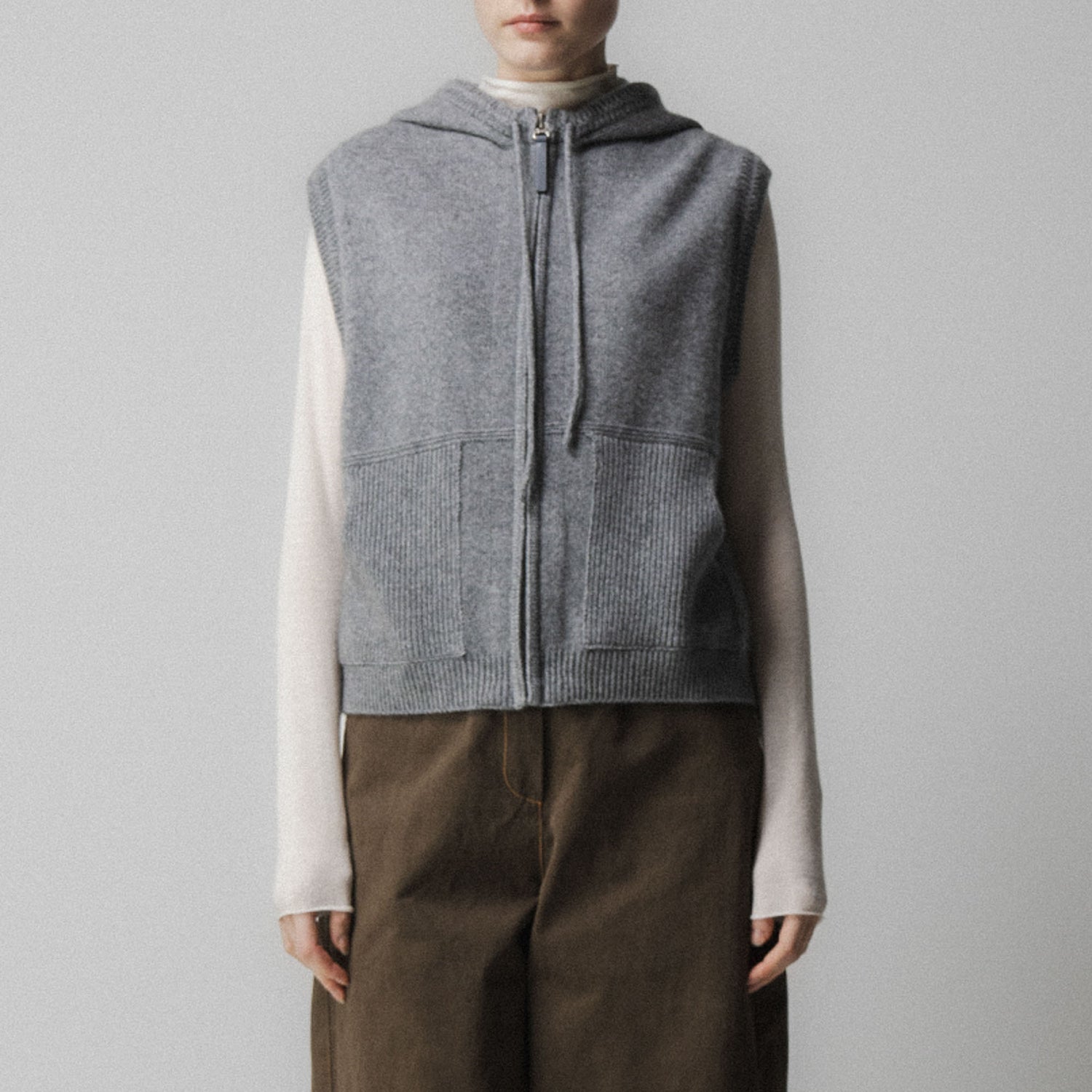 EMIN PAUL Hood Zip Up Knit Vest in Charcoal