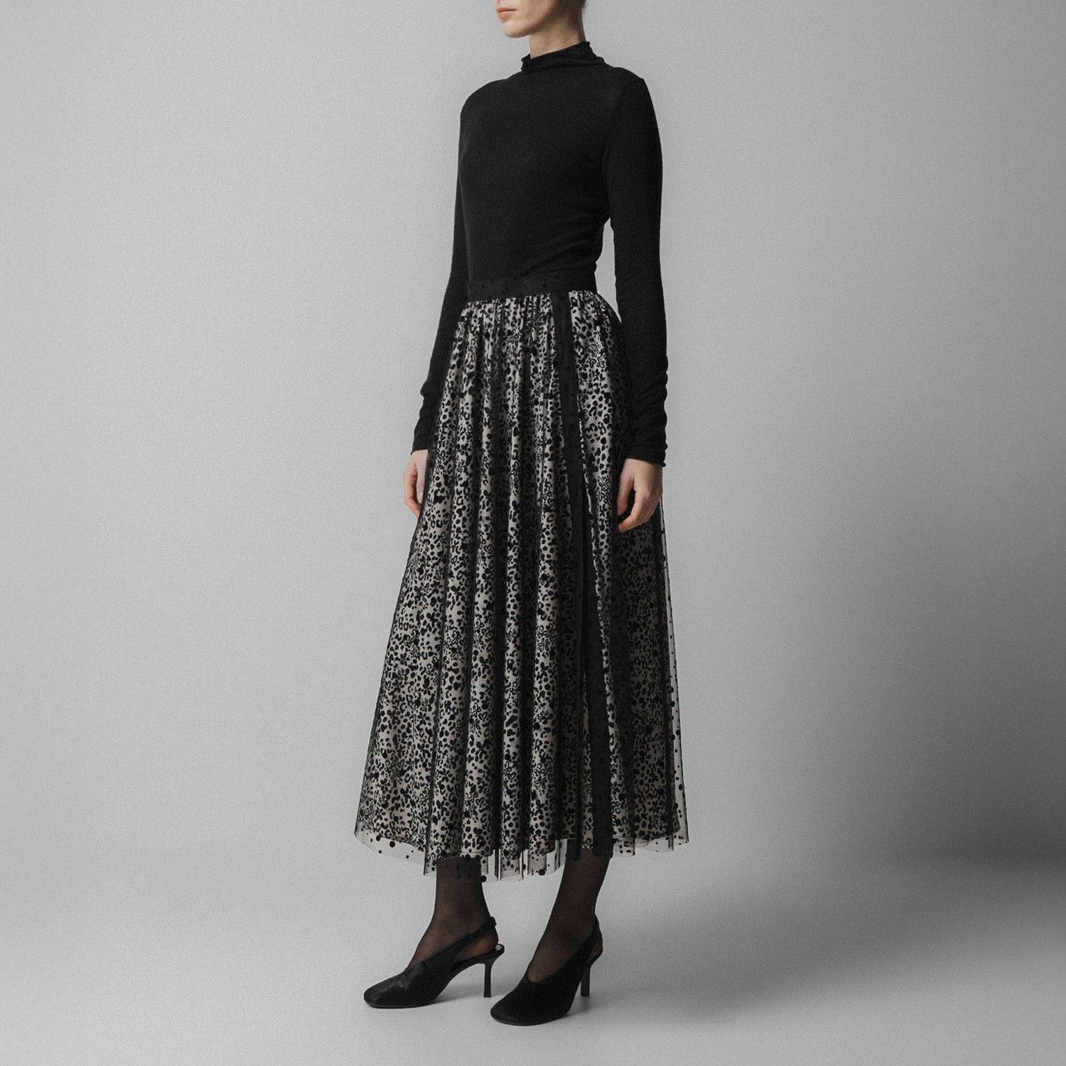 Lightweight and semi-sheer, it flows effortlessly with every step, offering just enough edge to balance the romantic print mix.