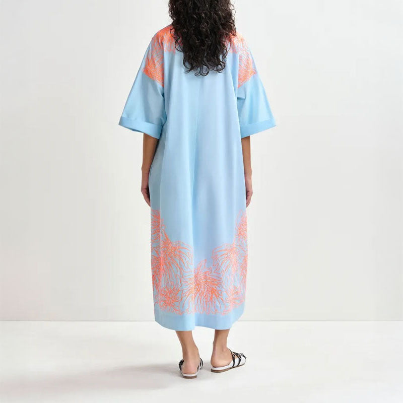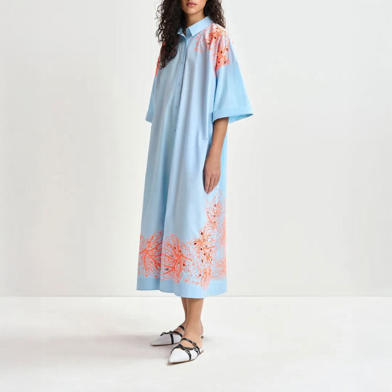 ESSENTIEL ANTWERP Hanchor Embroidered Midi Dress in Combo1 Lake Blue