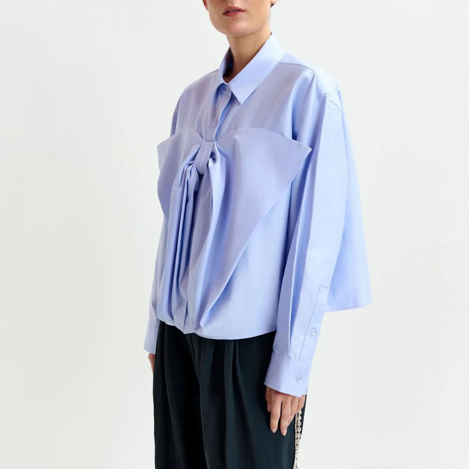 ESSENTIEL ANTWERP Ibow Bow Shirt in Pale Kingsblue