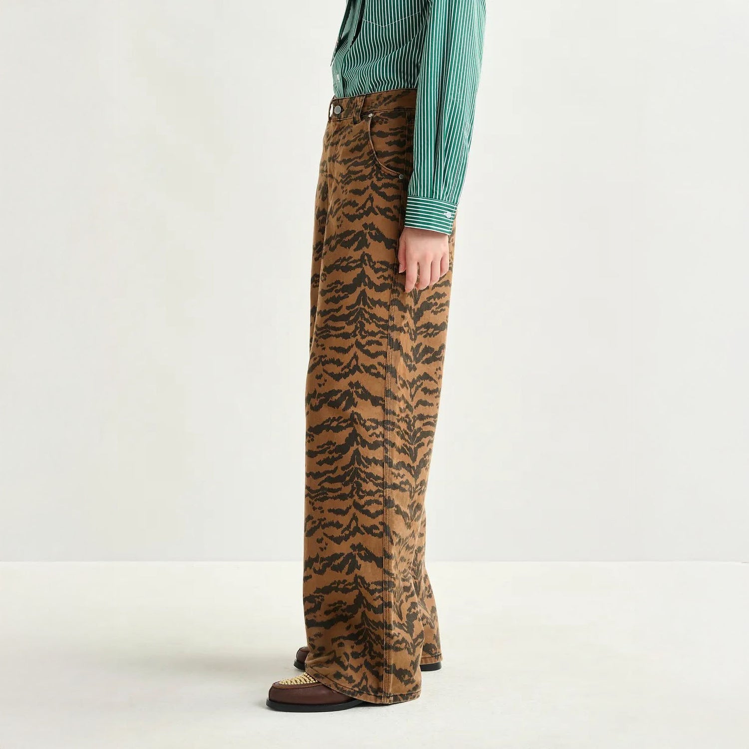 Walk on the wild side with these tiger print jeans.