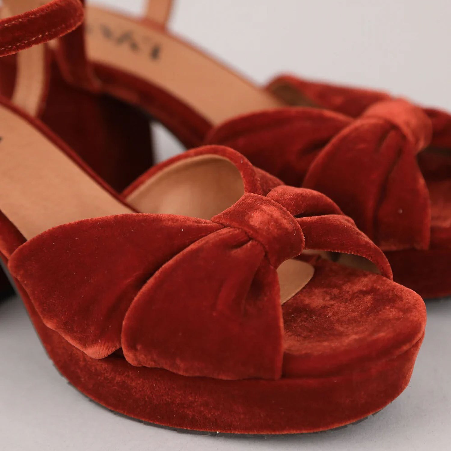 These stunning shoes feature a playful bow at the front and a sturdy block heel, adding a vibrant pop of colour to any look. The ankle strap guarantees a secure and comfortable fit, while the luxurious velvet texture elevates your style with chic sophistication.