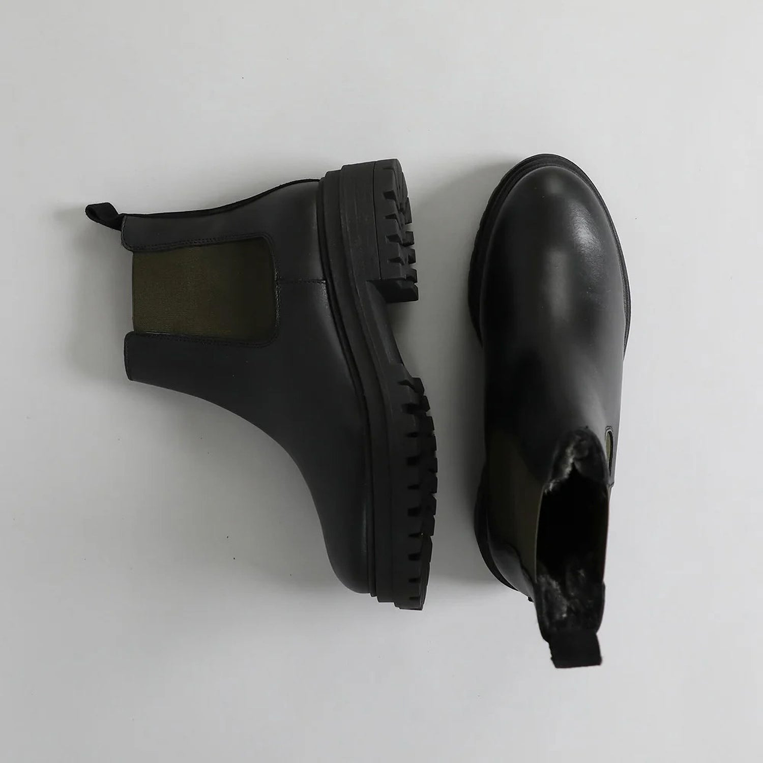 Style Yolla is the must-have chunky boot of the season. Crafted from soft black leather with a cosy faux-fur lining and a thick rubber sole, these boots offer incredible warmth and comfort.. while remaining surprisingly lightweight. Versatile, easy to style, and perfect for keeping you warm in style.