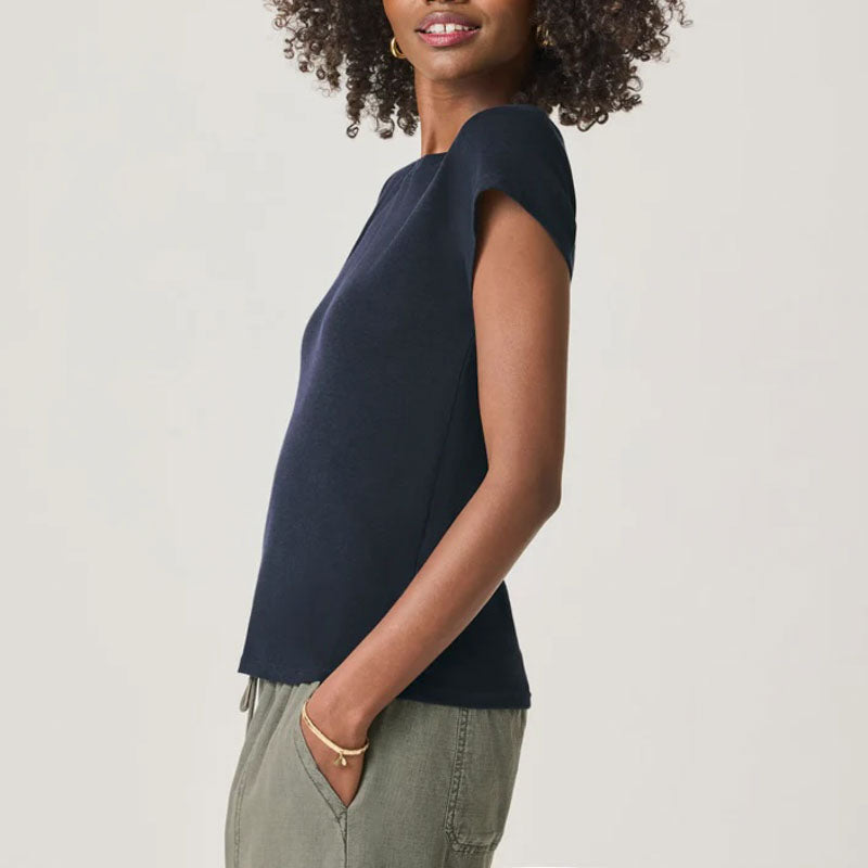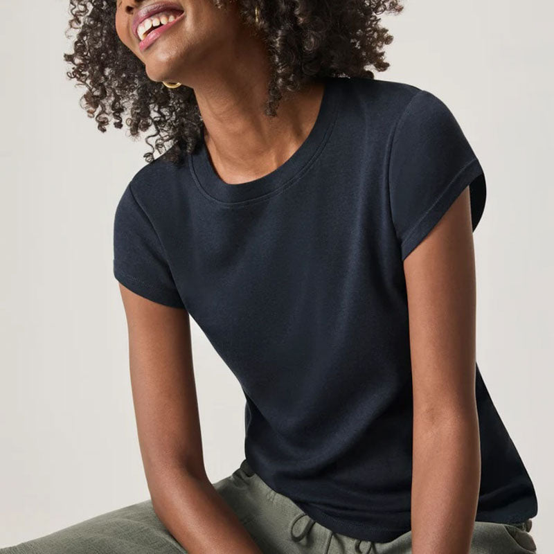 The Faye Crewneck Tee is an everyday essential. It stretches to shape to your body but bounces back to its original form. An ideal essential to wear alone or as a layering piece, this tee has a slim fit and cap sleeves for all day comfort.