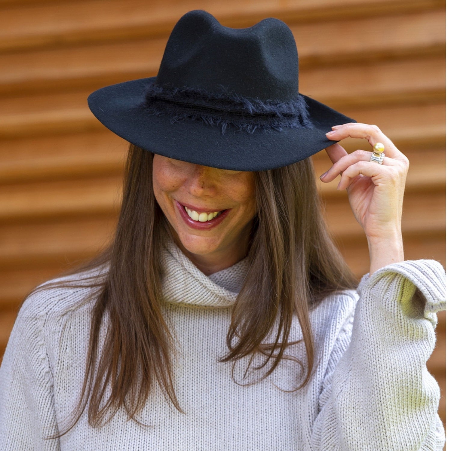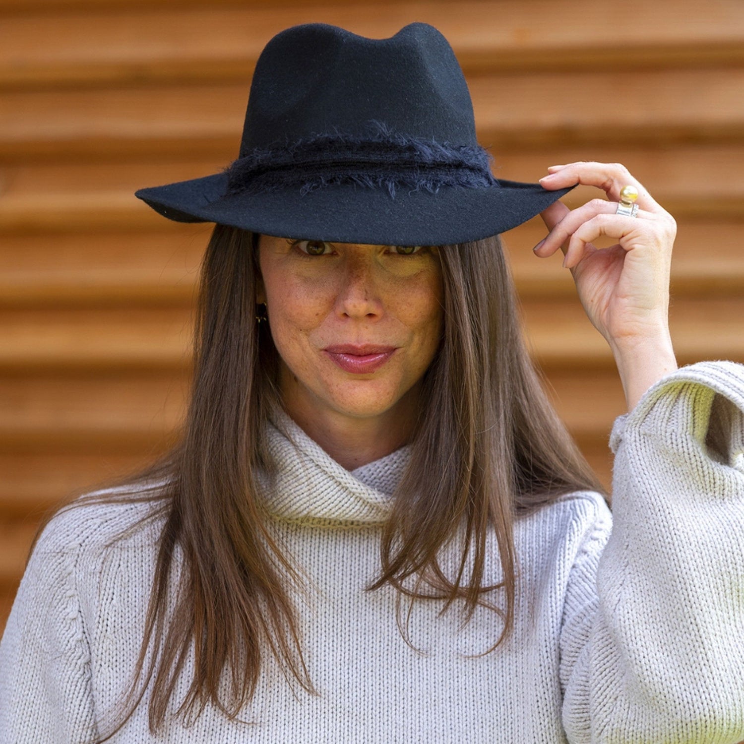 TRAVAUX EN COURS Felt Fedora Hat with Mohair Band in Black