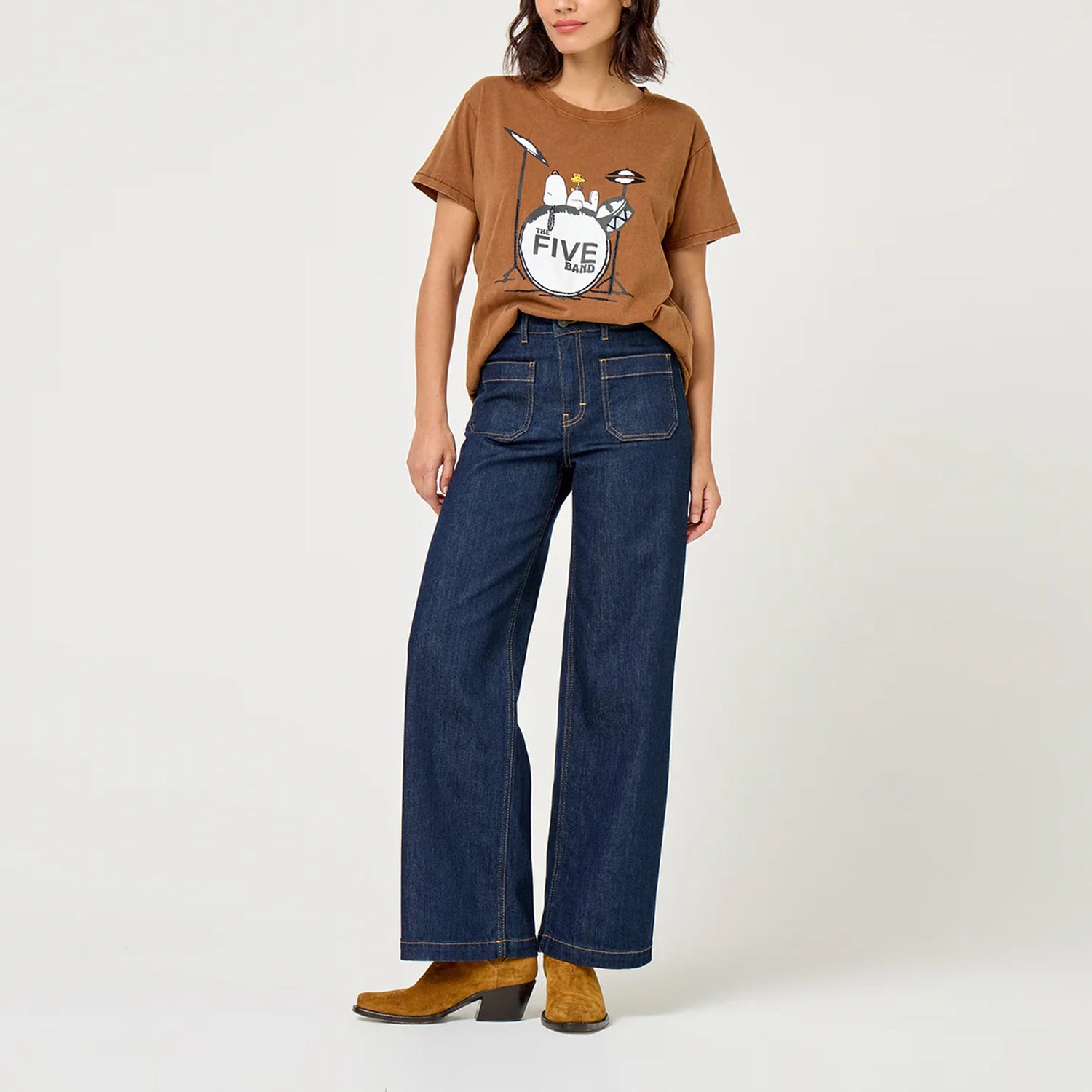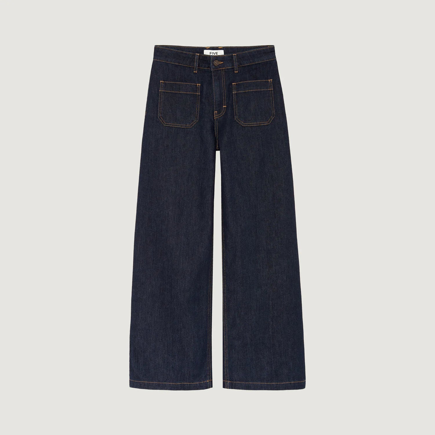 Lucia Jeans in Dark Blue – Women's standard-fit cotton jeans designed for effortless style. Featuring a FIVE-branded button with a concealed zip closure and a belt with belt loops, these jeans are perfect for a timeless, everyday look
