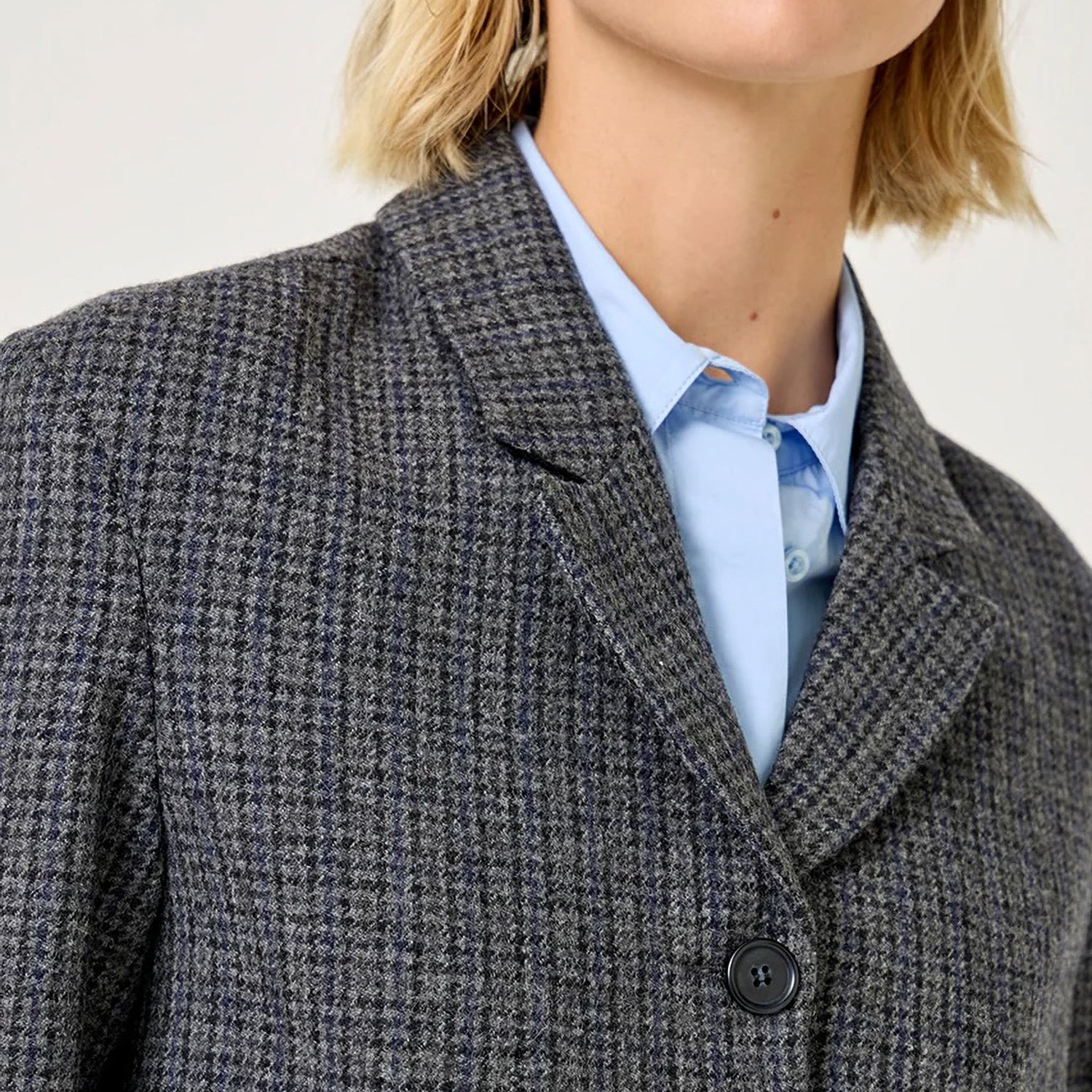Designed with a tailored collar and a sleek straight cut, this versatile jacket features two front pockets and a button closure for a polished, everyday look.