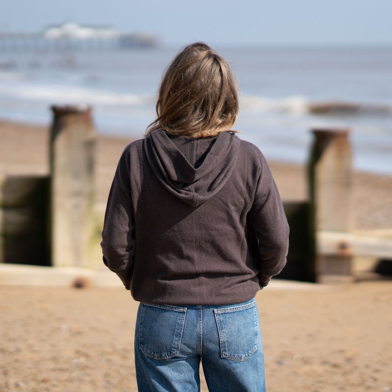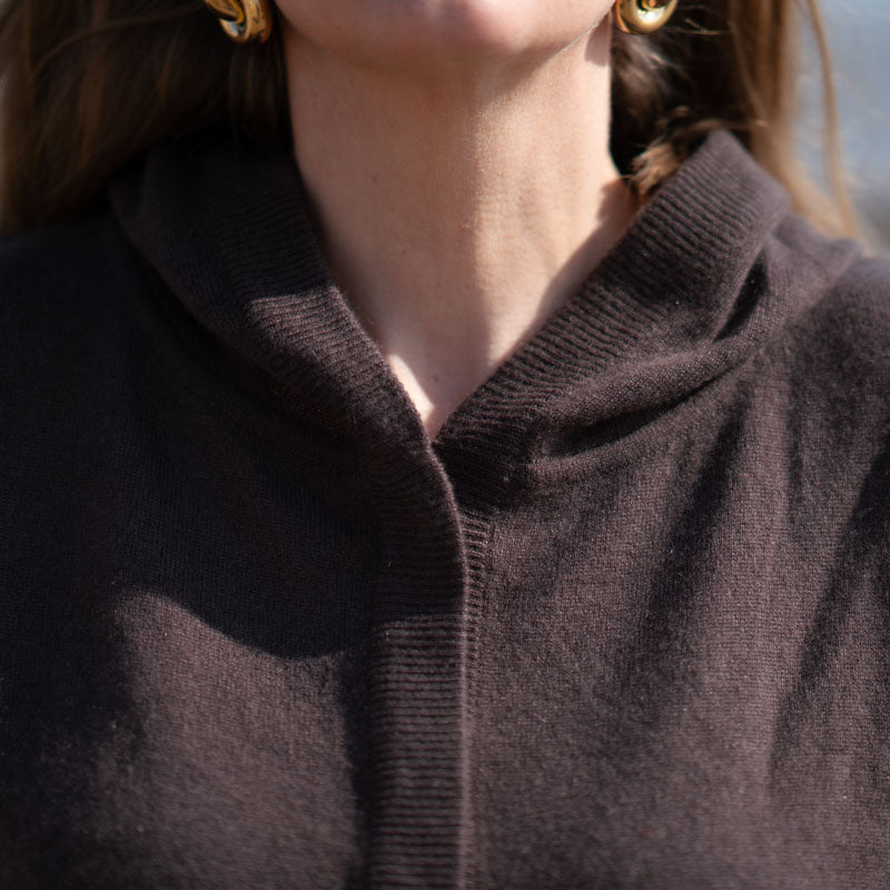 COLLEN & CLARE Fleur 100% Cashmere Hoodie in Bitter Chocolate