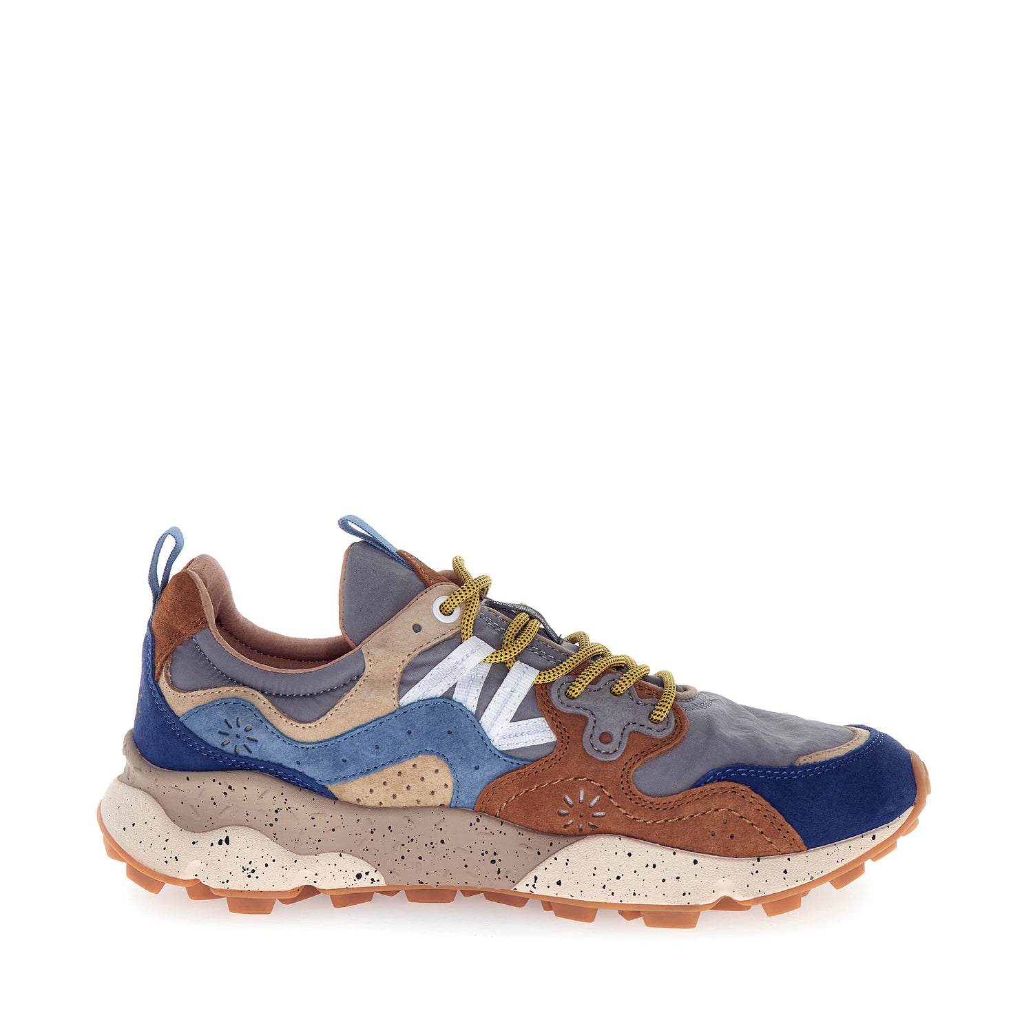 FLOWER MOUNTAIN Yamano 3 Mens Suede/Nylon Trainers in Brown/Petrol/Light Blue