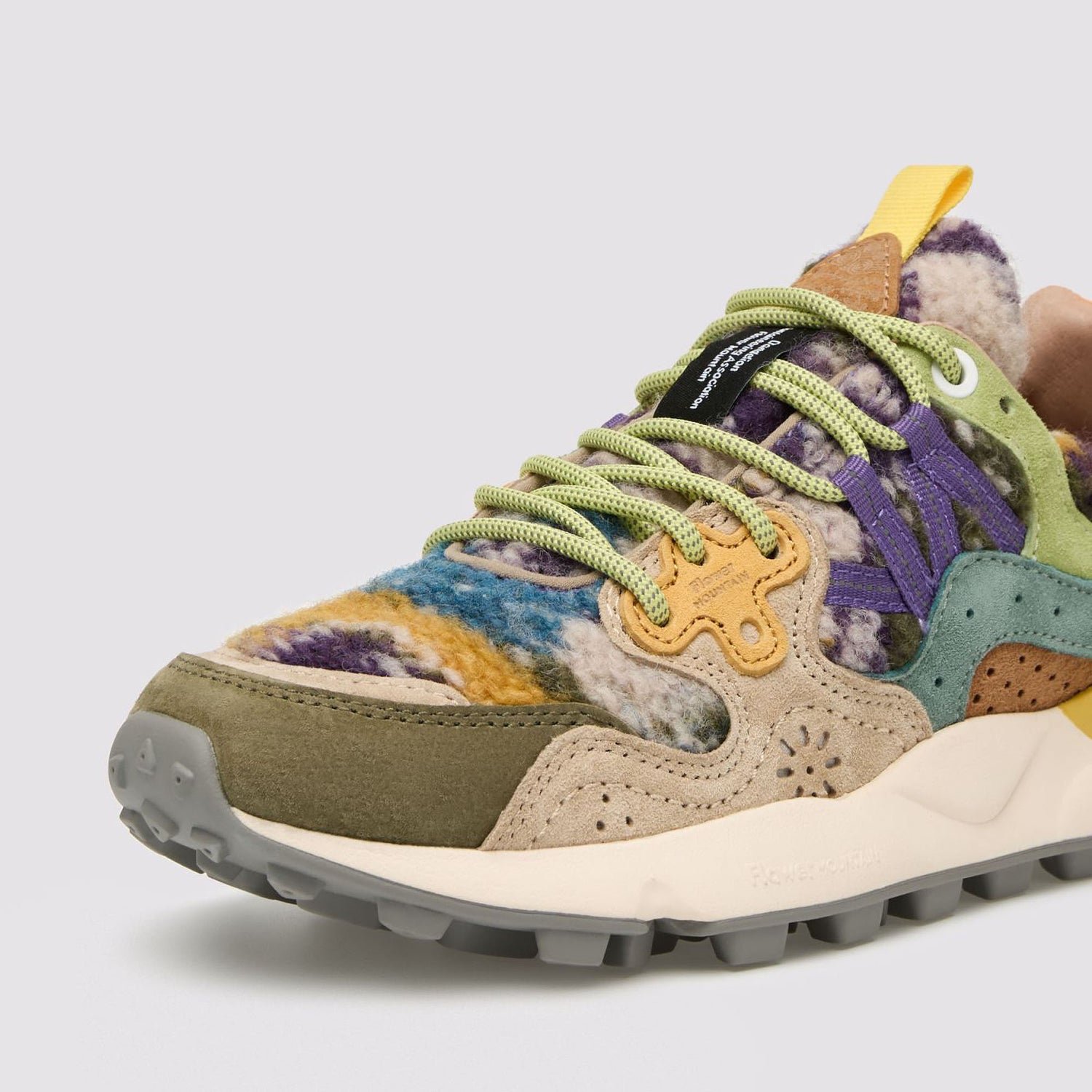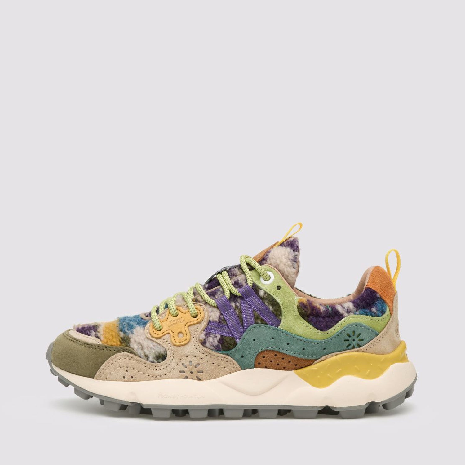 FLOWER MOUNTAIN Yamano 3 Womens Suede/Teddy Trainers in Grey/Taupe/Dark Green
