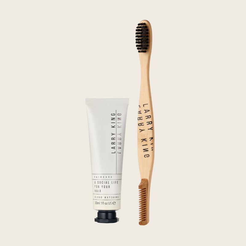 Wave goodbye to flyaways, static baby hairs and hairline fluff with the Larry King Haircare dual-ended bamboo brush and comb with a travel sized A Social Life For Your Hair. This multi tasking duo will keep your tresses controlled whilst on the go.