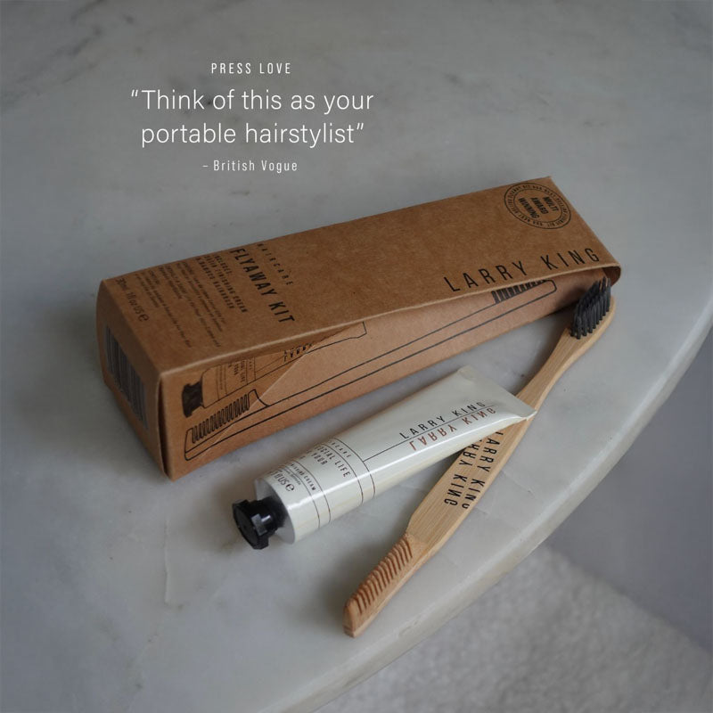 Larry says  "This is your 'on-the-go' secret weapon and our most cult product to date. Use it to tame flyaways, baby hairs and to rescue your hair from winter rain, beachy winds or for a pre-zoom meeting touch up, It's like carrying me around in your bag!"