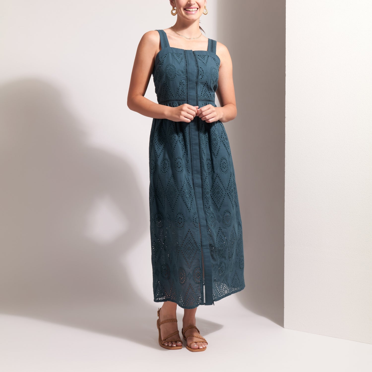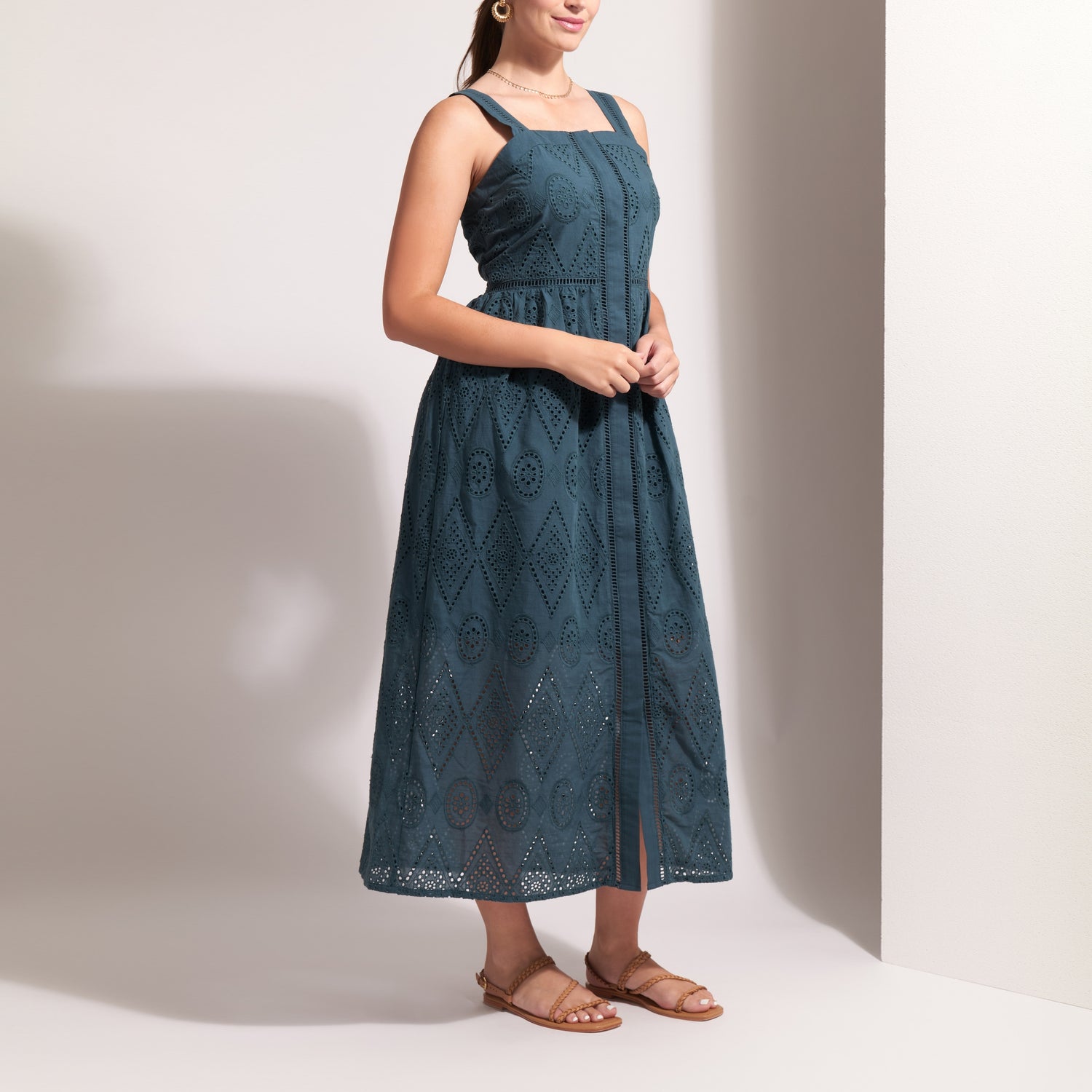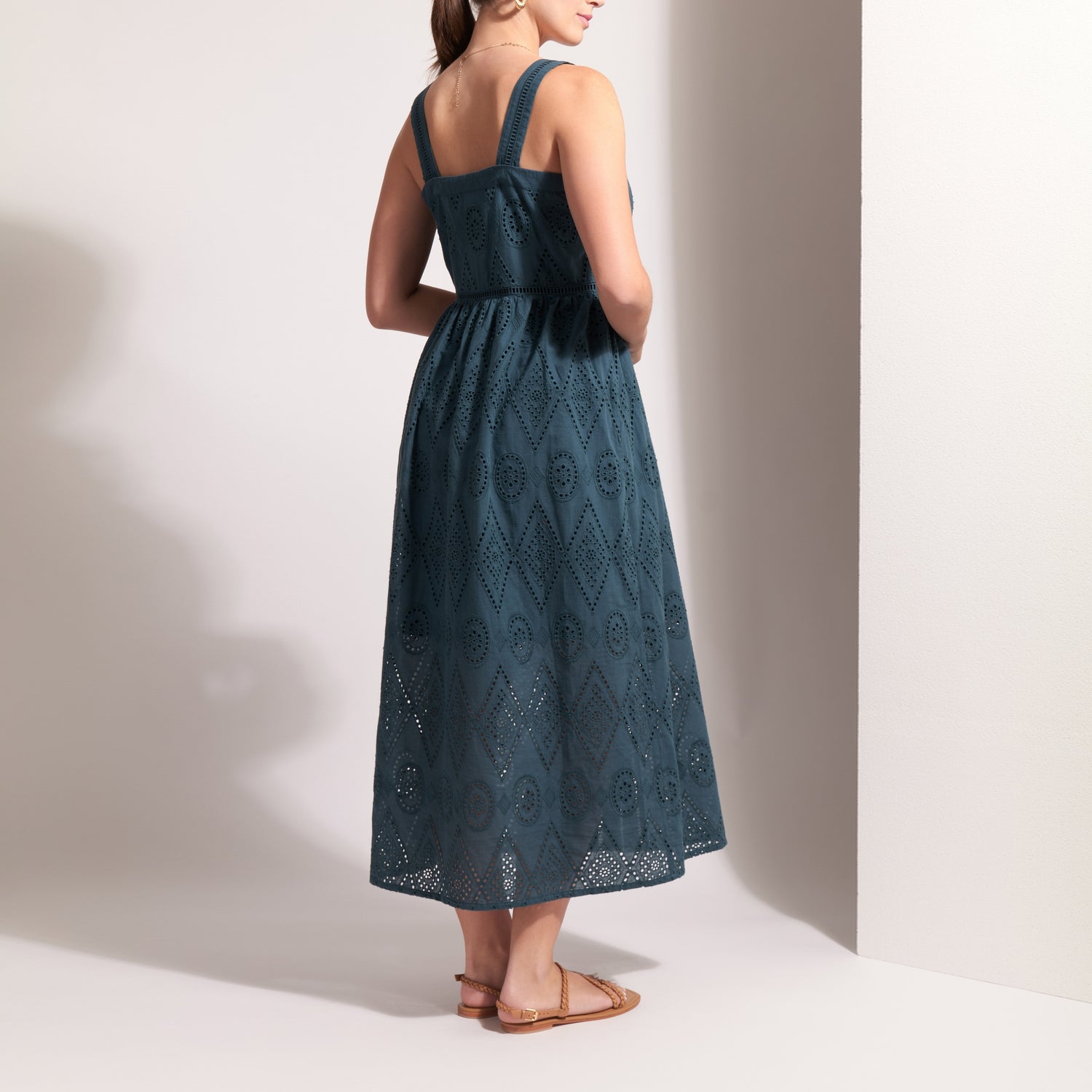 FOIL Sweet Stitch Broderie Anglaise Sundress in Blue Coral Deco