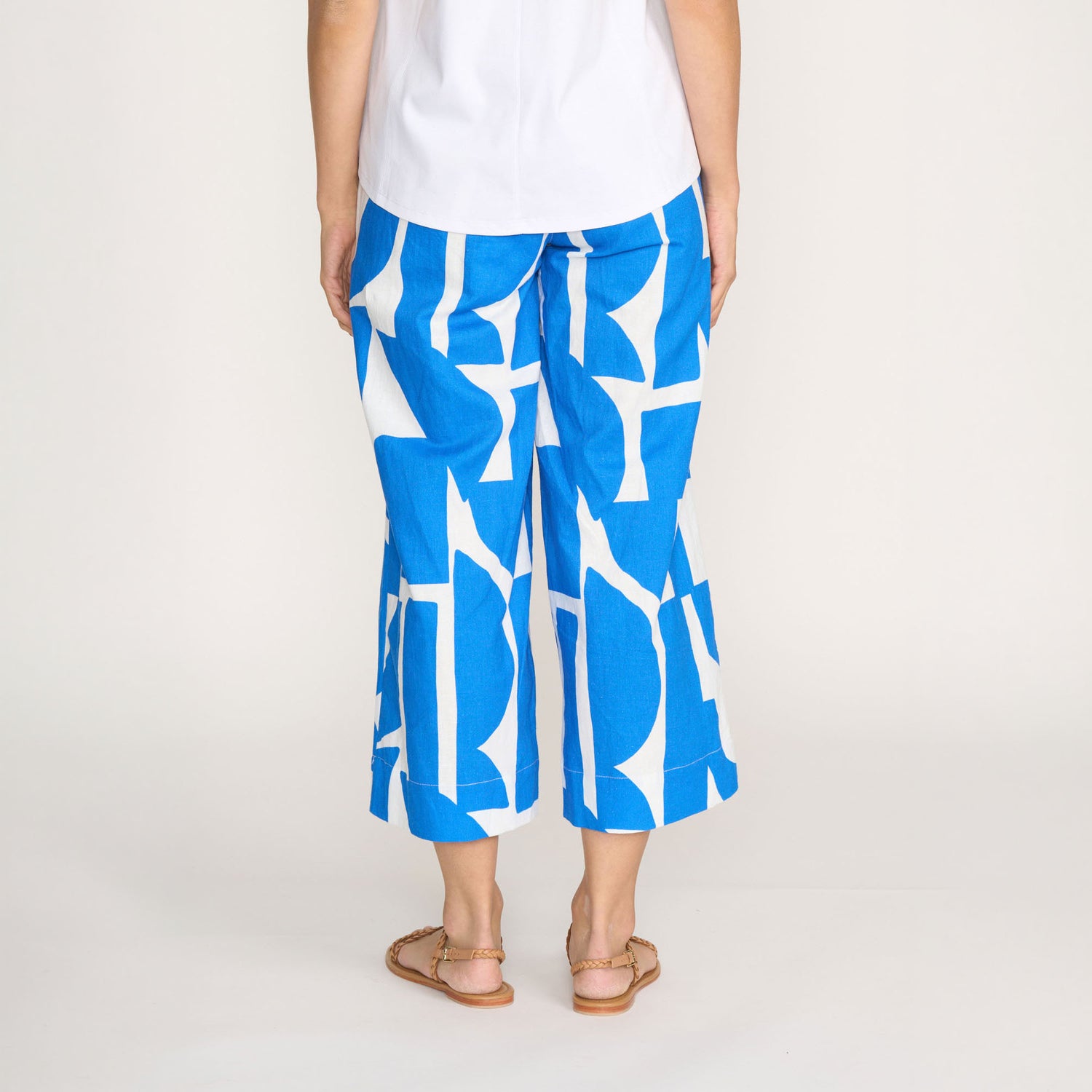 Stay comfortable and chic with the FOIL Natural Ability Cotton-Linen Mix Trousers in Blue. Featuring a wide-leg, slightly cropped design, these trousers are crafted from a breathable cotton-linen blend for an effortless, relaxed fit... perfect for summer layering or casual elegance.