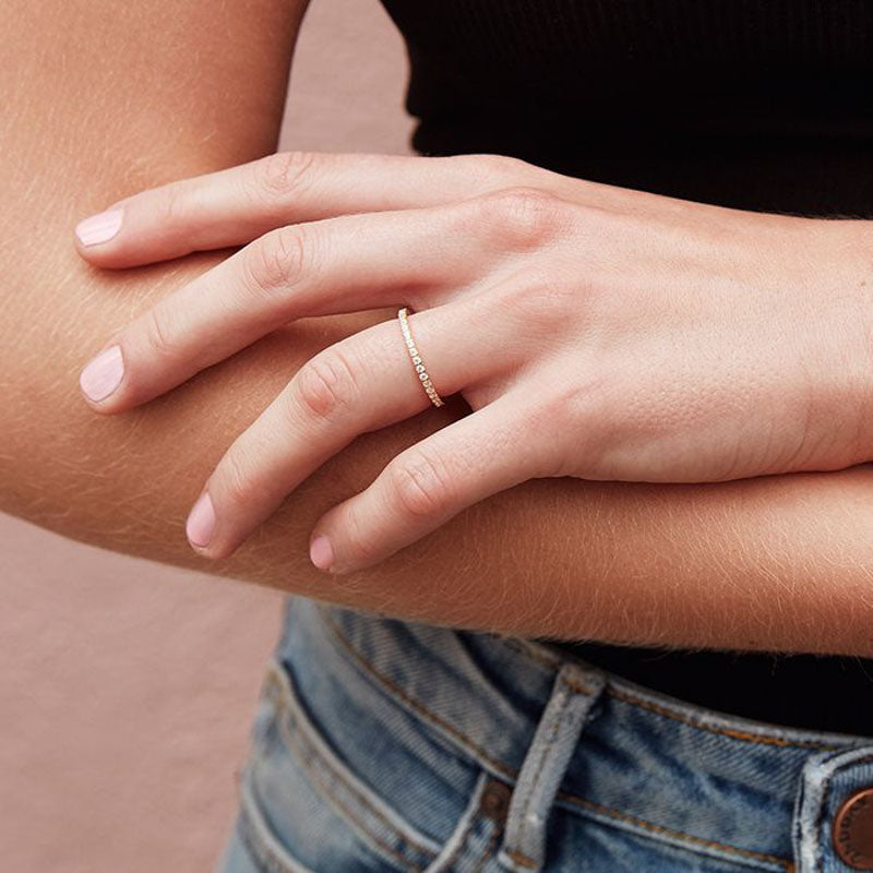 One of our best sellers, Glow ring, can be seen here in shiny gold plating with clear stones and looks great when combined with other rings from Edblad.