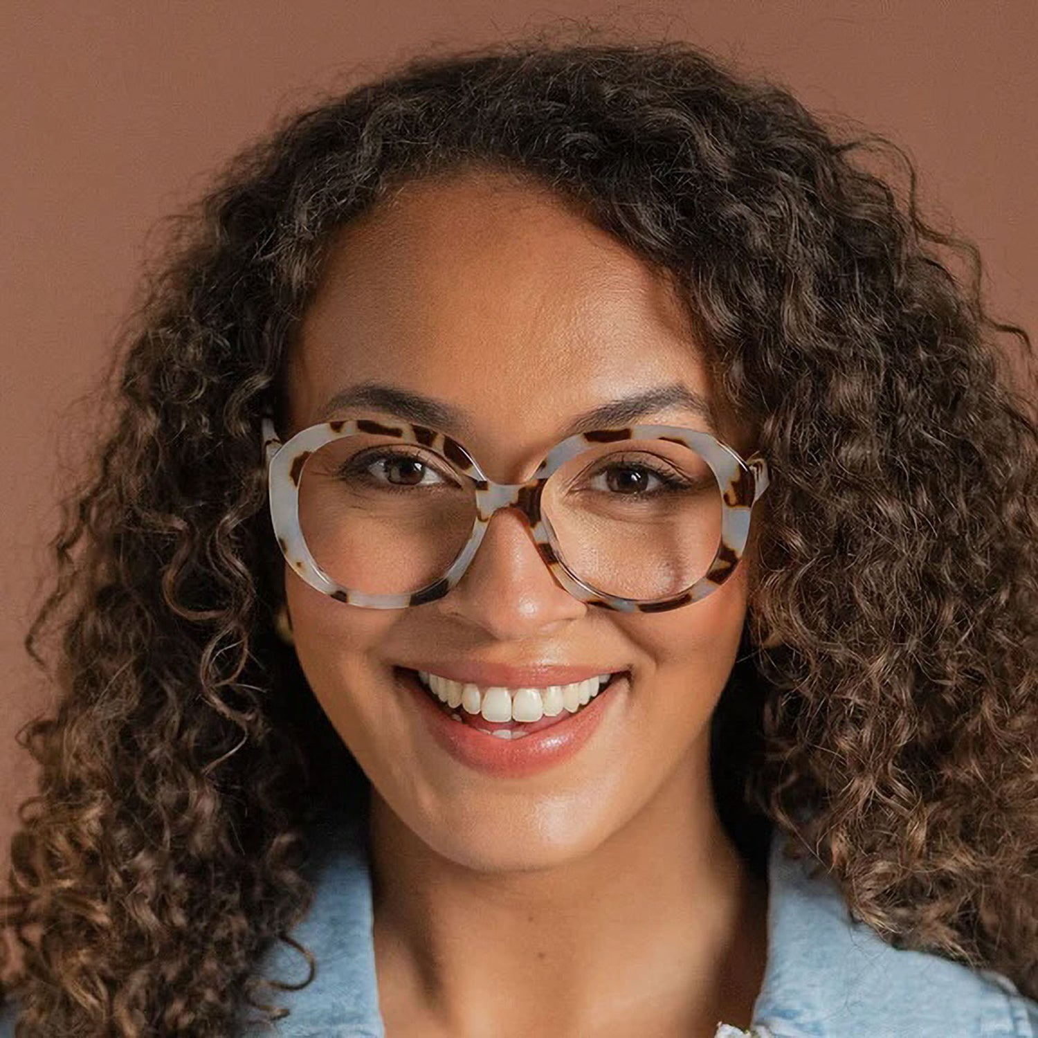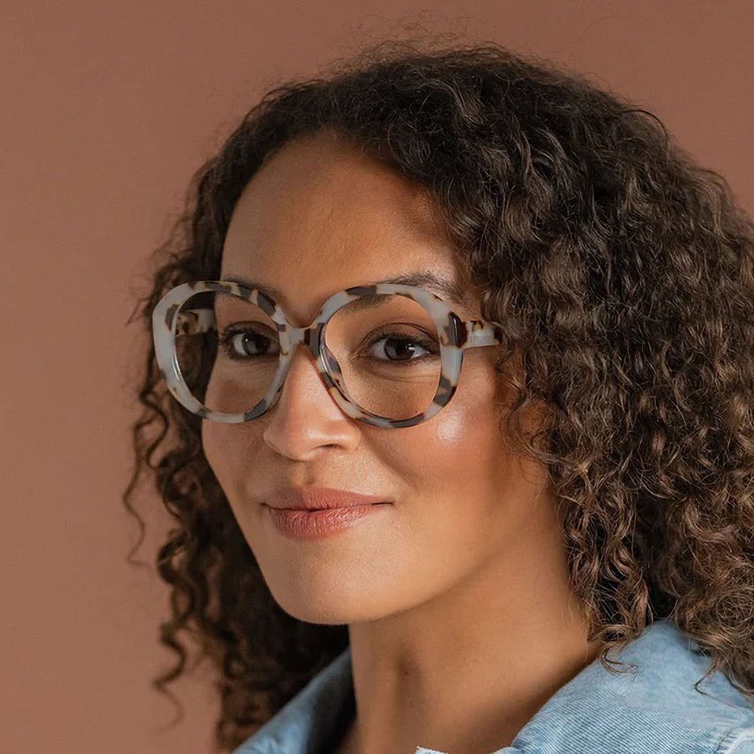 Big, Bold and Beautiful! Mila is the perfect style for those who want to make a statement! Finished in an elegant white tortoiseshell pattern and complete with sprung hinges for extra comfort. Comes with a free grey felt Goodlookers carry case for safekeeping.