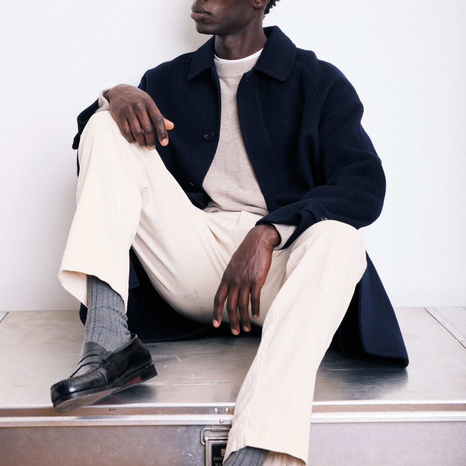 The GRAIG coat is what we call a “cool guy jacket” in the shop, a standout piece in the Hartford men’s wardrobe that effortlessly blends elegance with casual style.