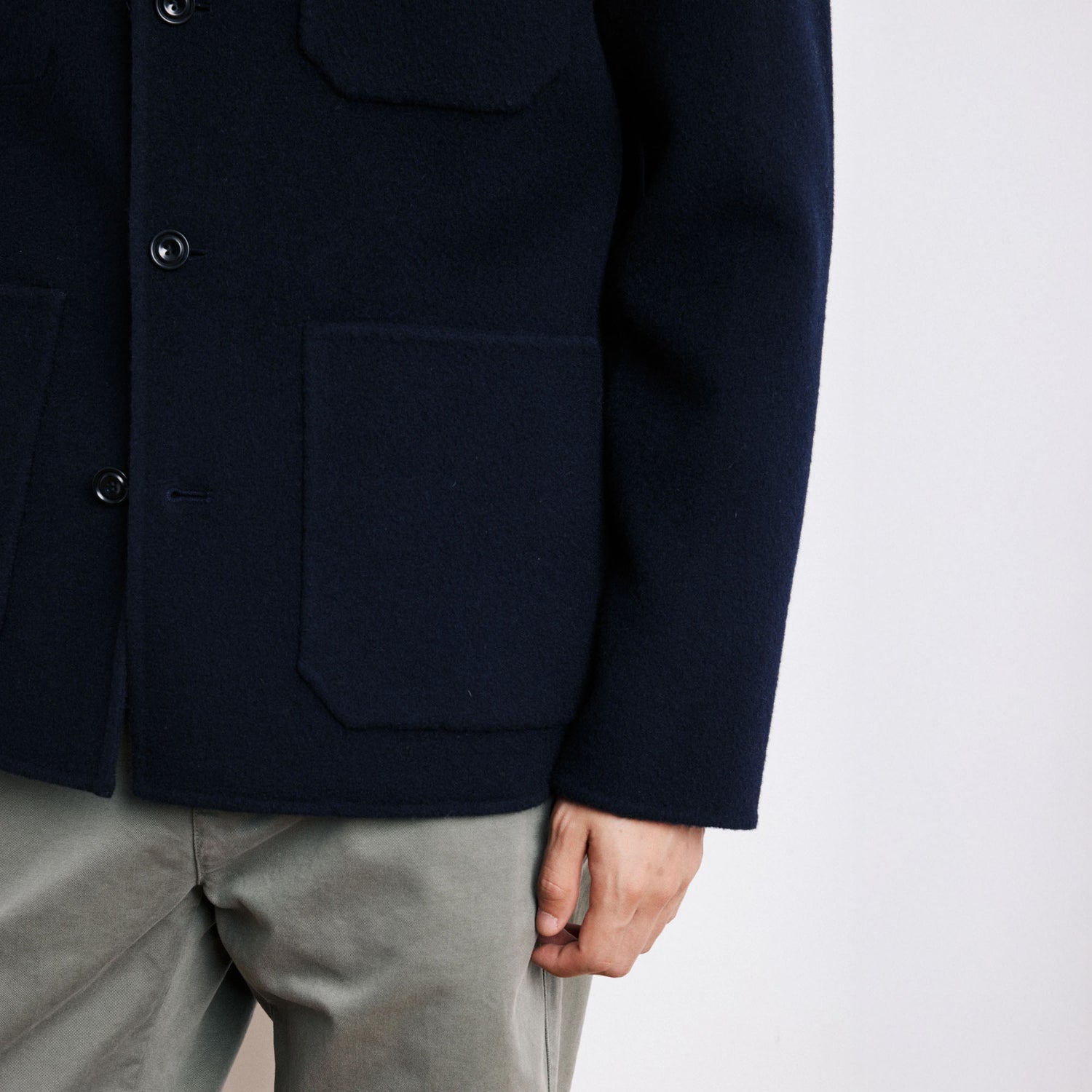 Jacket men double-faced wool. Two front patch pockets and one chest pocket. Invisible patch pocket inside.