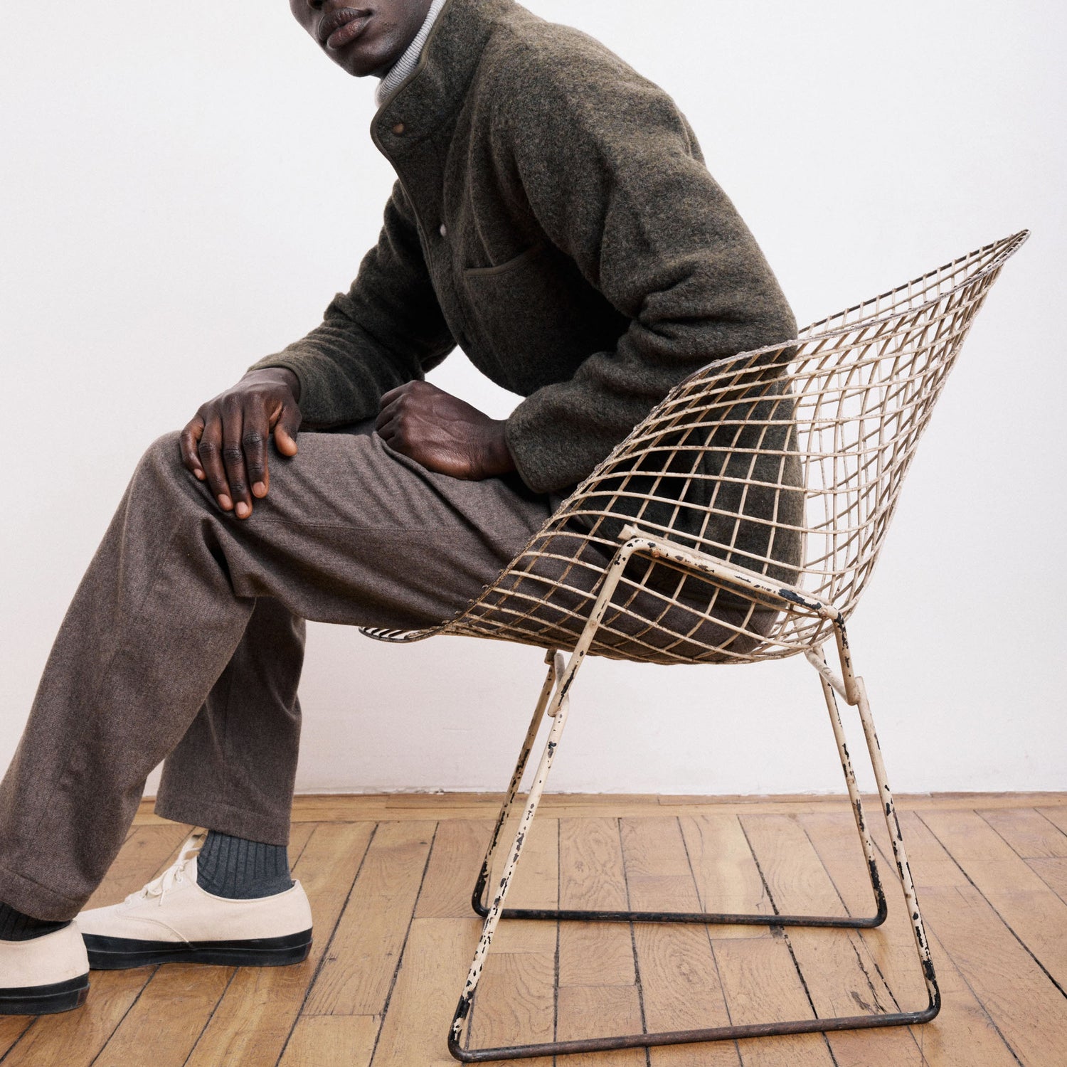 The Jock men's jacket features a clean, modern silhouette with a tailored fit and high collar. Crafted from boiled wool, a fabric that's both warm and lightweight. It embodies the timeless essentials of the Hartford wardrobe. Versatile and easy to wear, it pairs effortlessly with jeans or smart trousers, striking the perfect balance of comfort, style, and practicality for mid-season dressing.