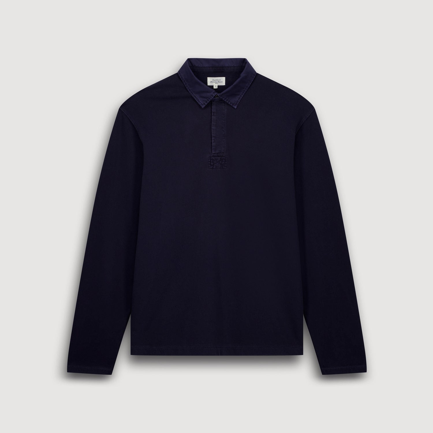 Lightweight men's sweatshirt with a Polo collar and long sleeves. Buttoned "rugby" collar in fabric.