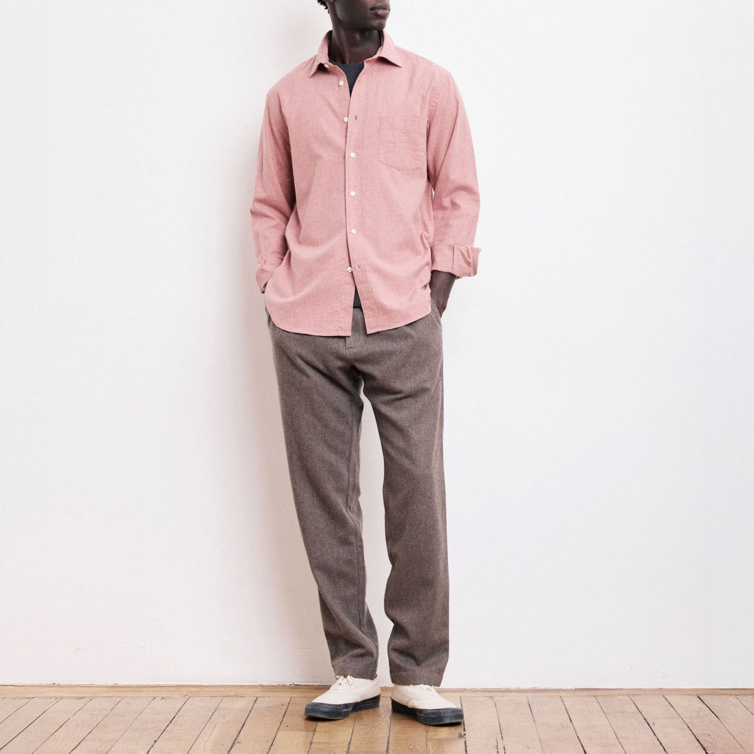 The PAUL shirt is the original Hartford shirt. Its fit regular fit, chest patch pocket and American collar make it a casual-inspired shirt. It's made here in a mottled cotton flannel that's been brushed for softness.