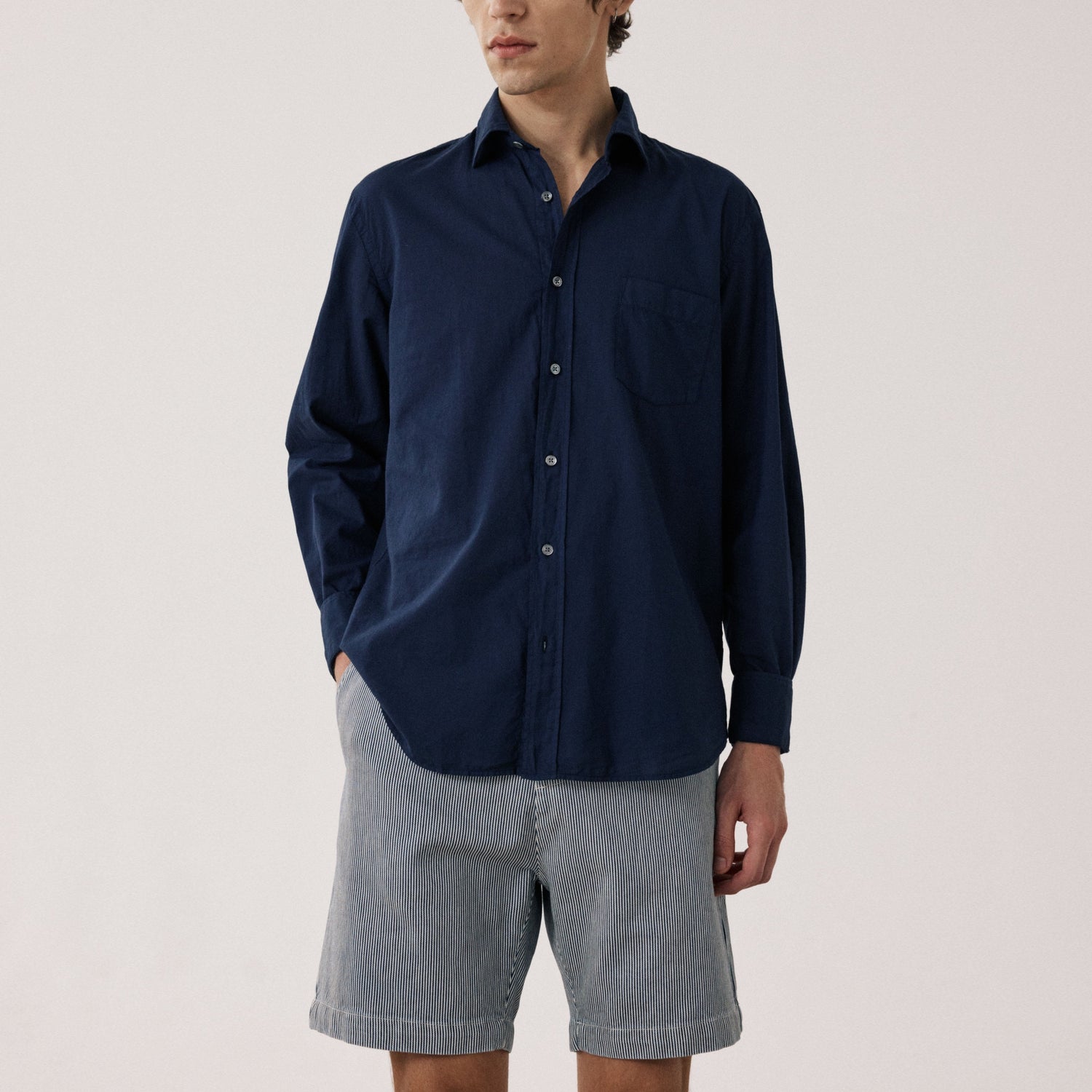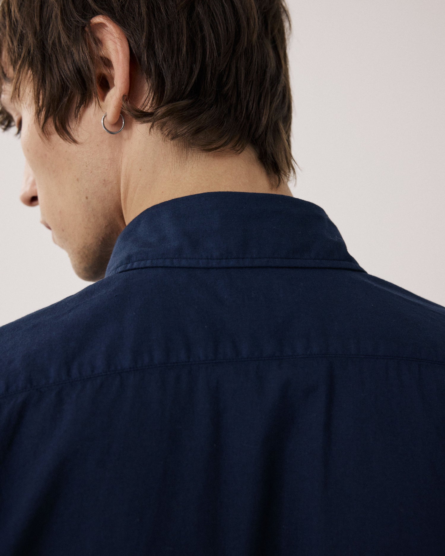 HARTFORD Paul Pat Cotton Shirt in Navy Blue