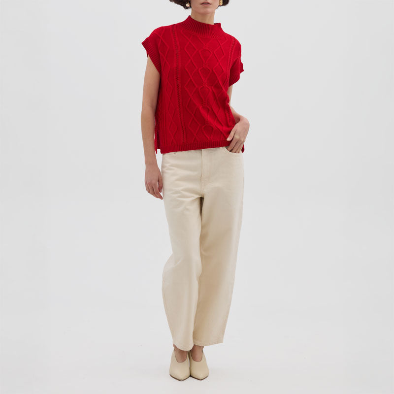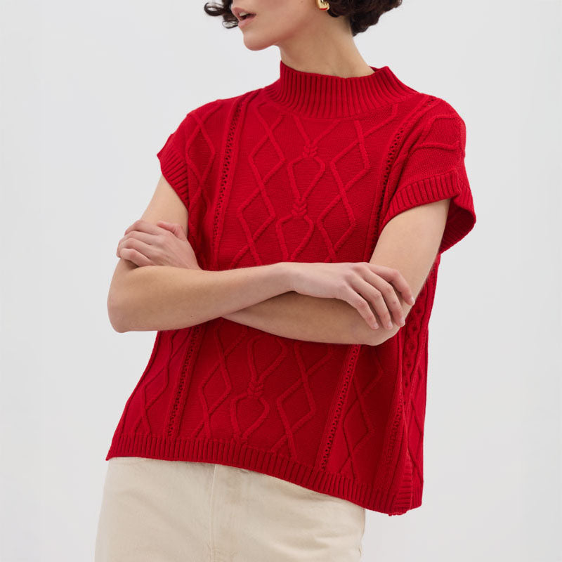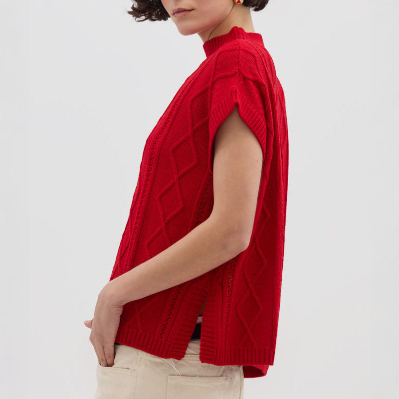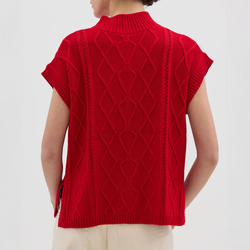 IRIS & WOOL Heart Cable Vest in True Red