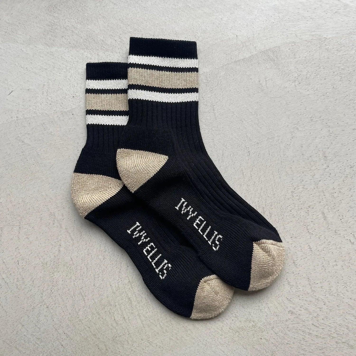 Crafted from ribbed black yarn, these quarter-length socks feature gold and cream stripes with a coordinating gold heel and toe, creating a striking yet versatile look. Whether paired with sneakers, loafers, or casual boots, The Brees delivers the ideal balance of retro flair and contemporary comfort.