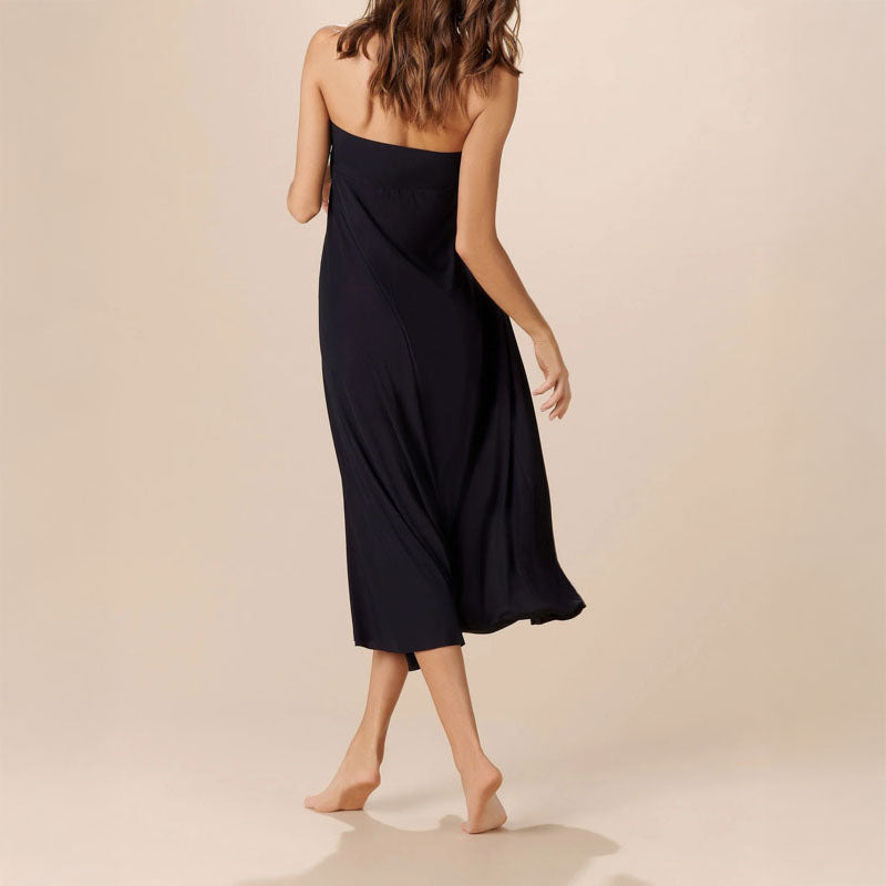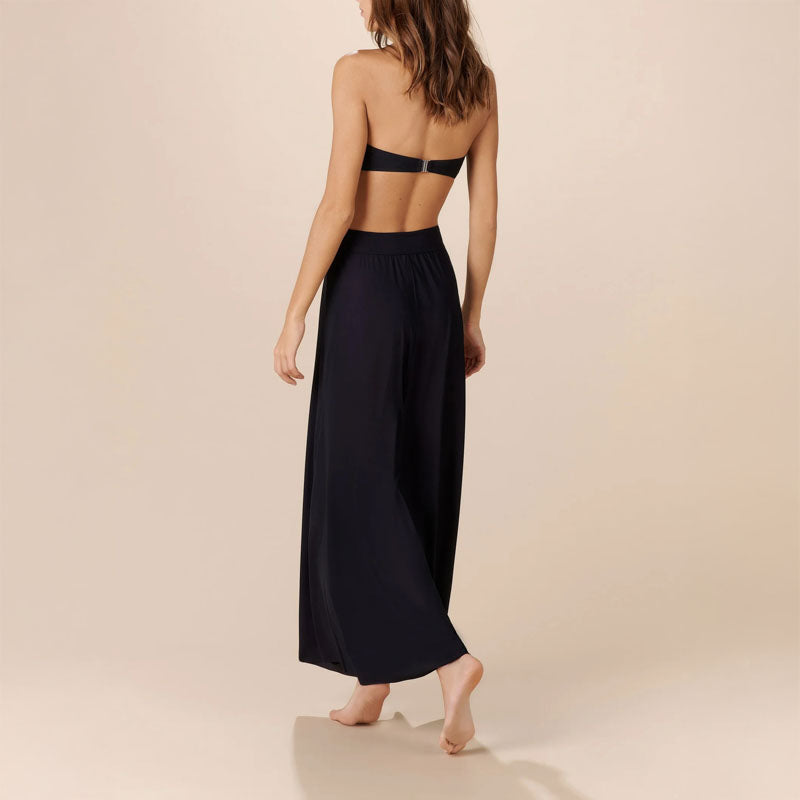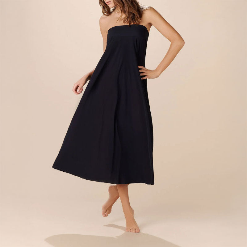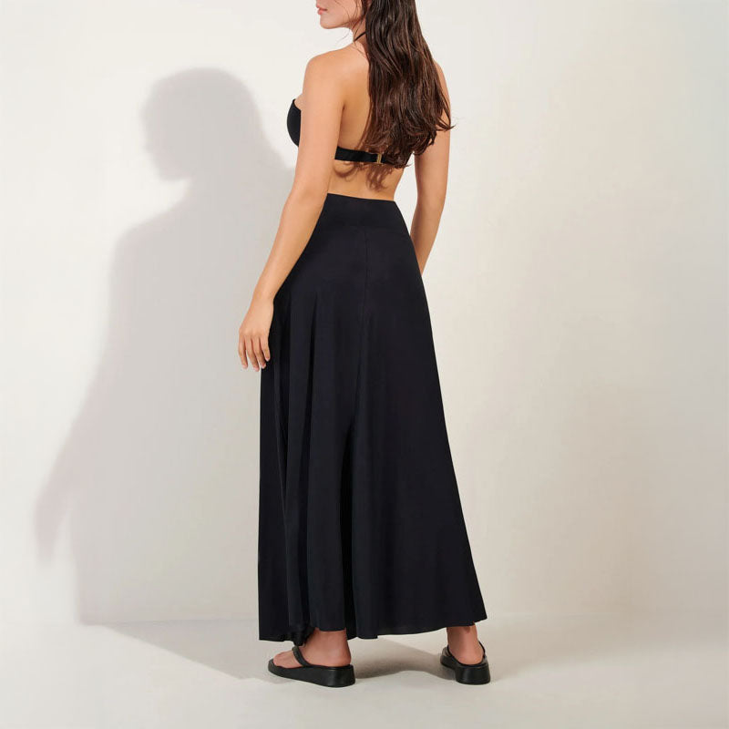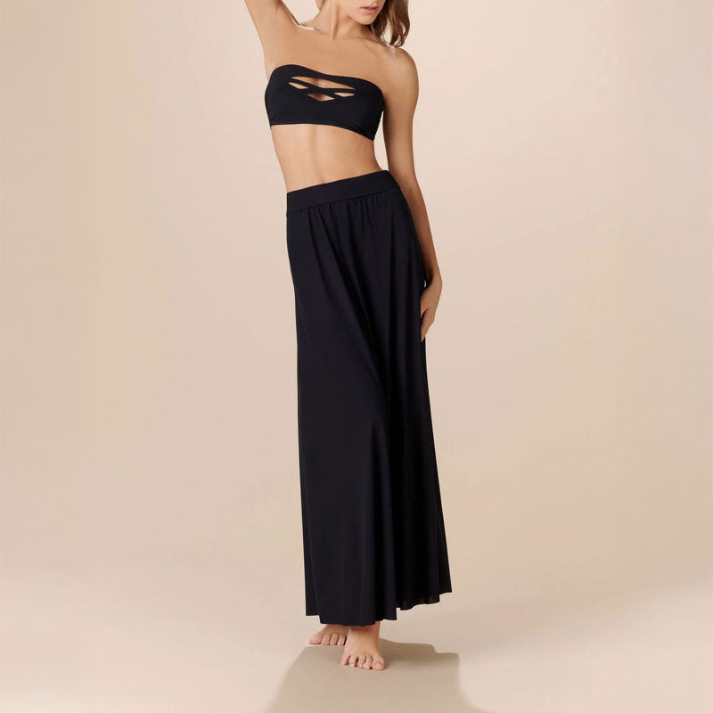 Flared skirt or strapless dress, JAYA can be worn according to your wishes and outings. Its flowing fabric is boosted with a wide elastic waistband to elegantly fit all body types. Timeless, the colour black enhances all body types