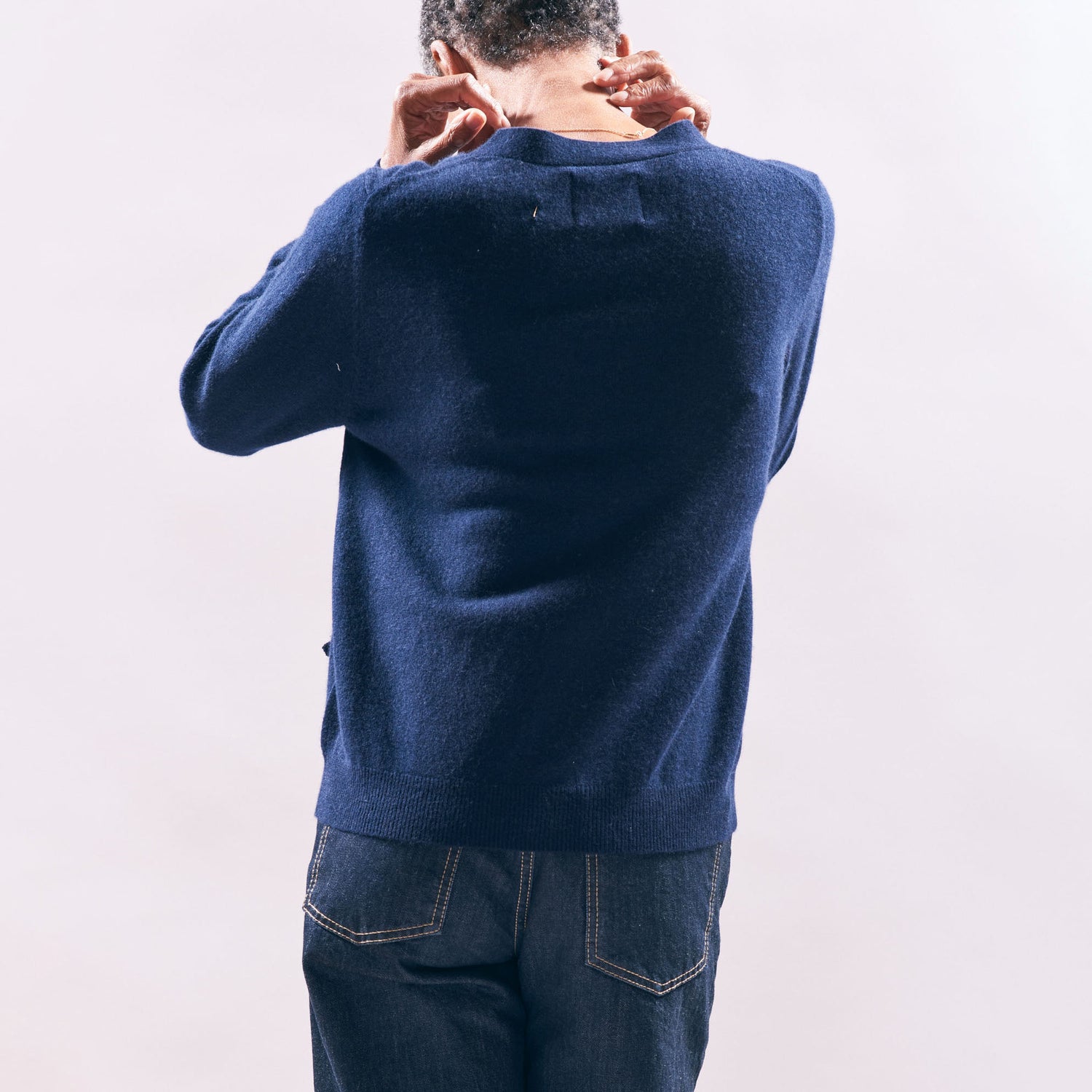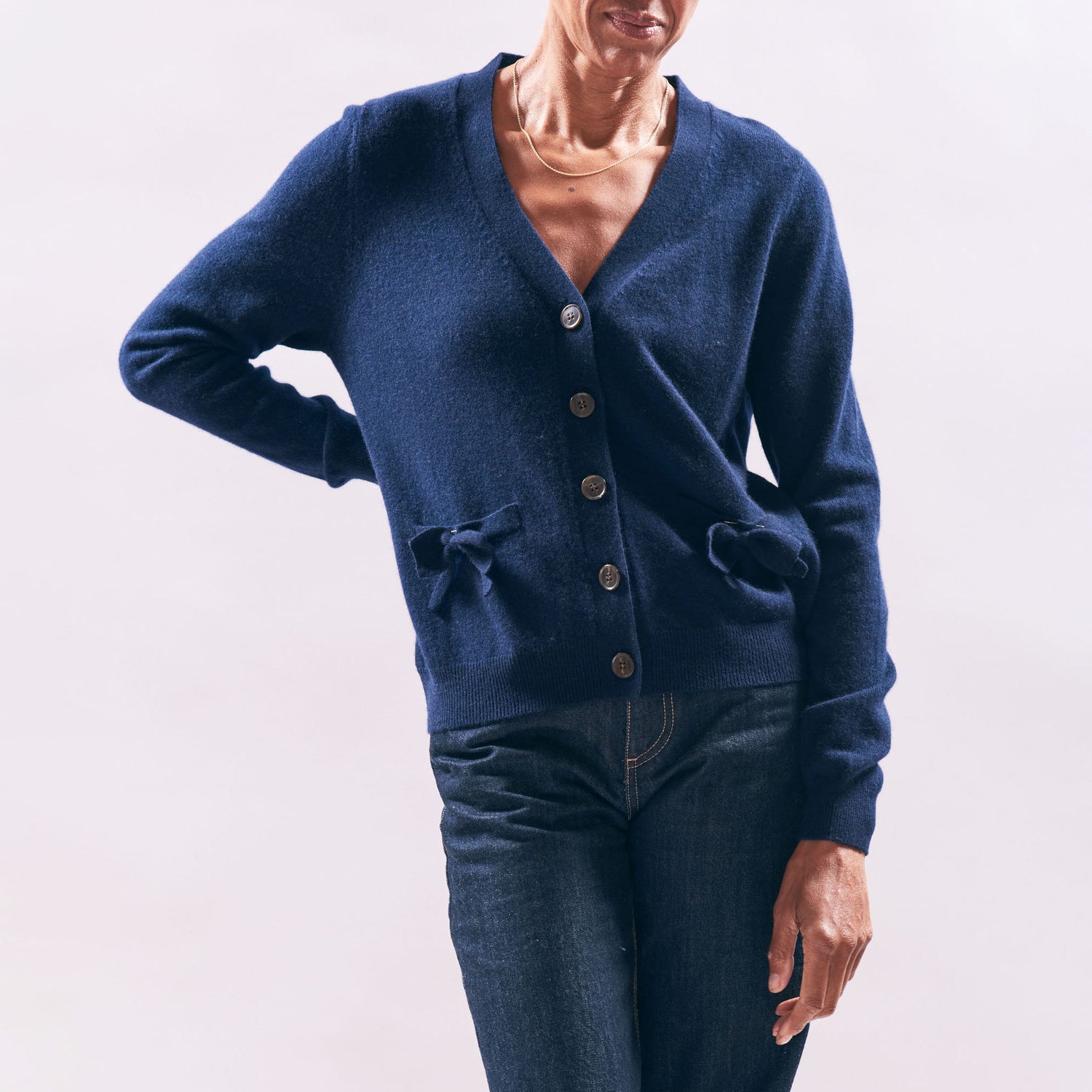 JUMPER 1234 Cashmere Bow Pocket Cardigan in Navy