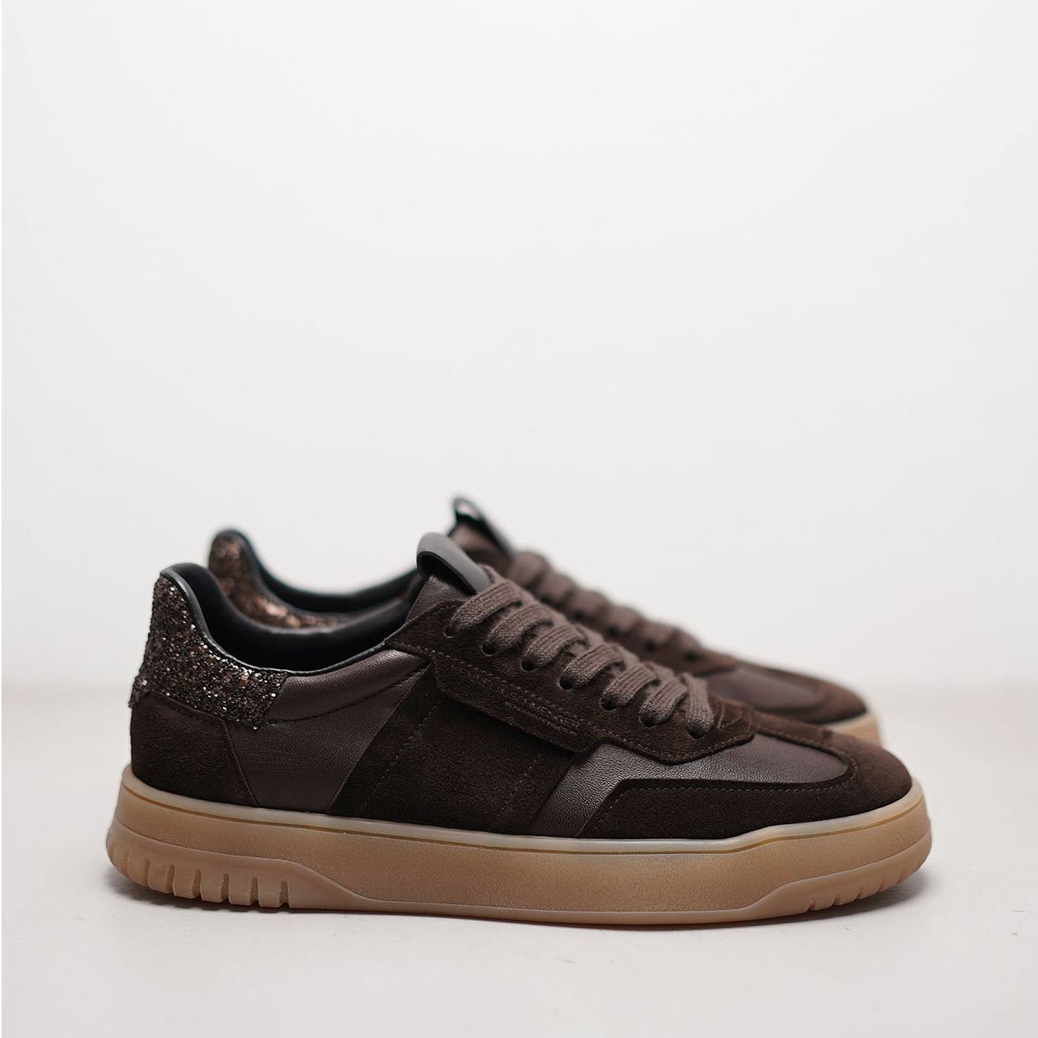 Add a touch of sparkle to your step with the Kennel & Schmenger Gaz Suede Sneakers in Brown. Crafted from rich suede and finished with a hint of shimmer at the heel, these sneakers strike the perfect balance between casual and chic. An elevated everyday essential with just the right amount of glam