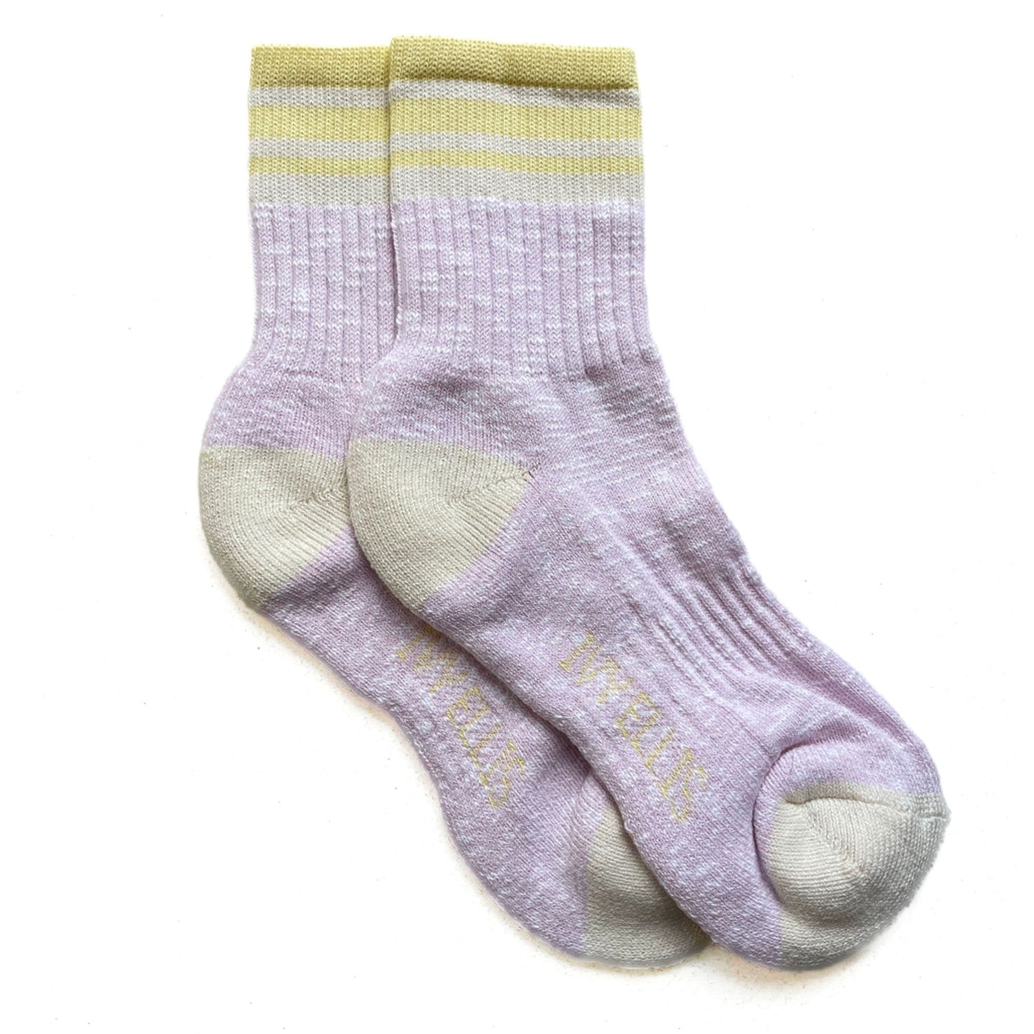 IVY ELLIS Ladies Avoch 1/4 Slubbed Socks in Lilac/Lemon