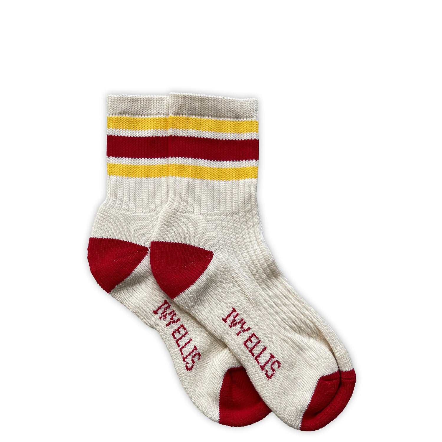 IVY ELLIS Ladies Dawson Vintage Sport Socks in Cream/Red/Yellow