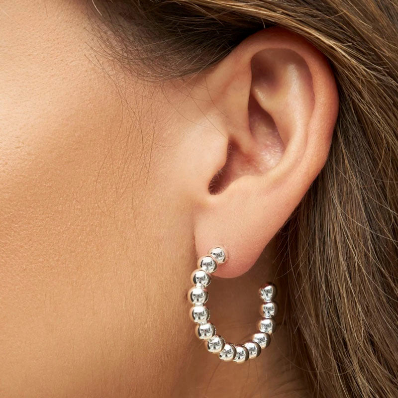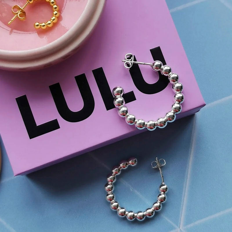 LULU COPENHAGEN Large Colour Ball Hoops in Silver