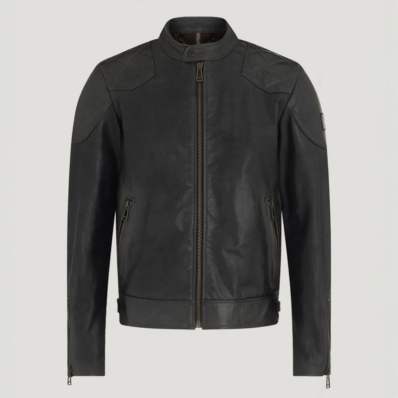 The Legacy Outlaw jacket in Dark Olive from Belstaff is made from hand-waxed leather, expertly washed and treated for a vintage, worn-in effect that adds character and edge. This classic biker style is designed to develop a unique patina over time, making it even more distinctive with age