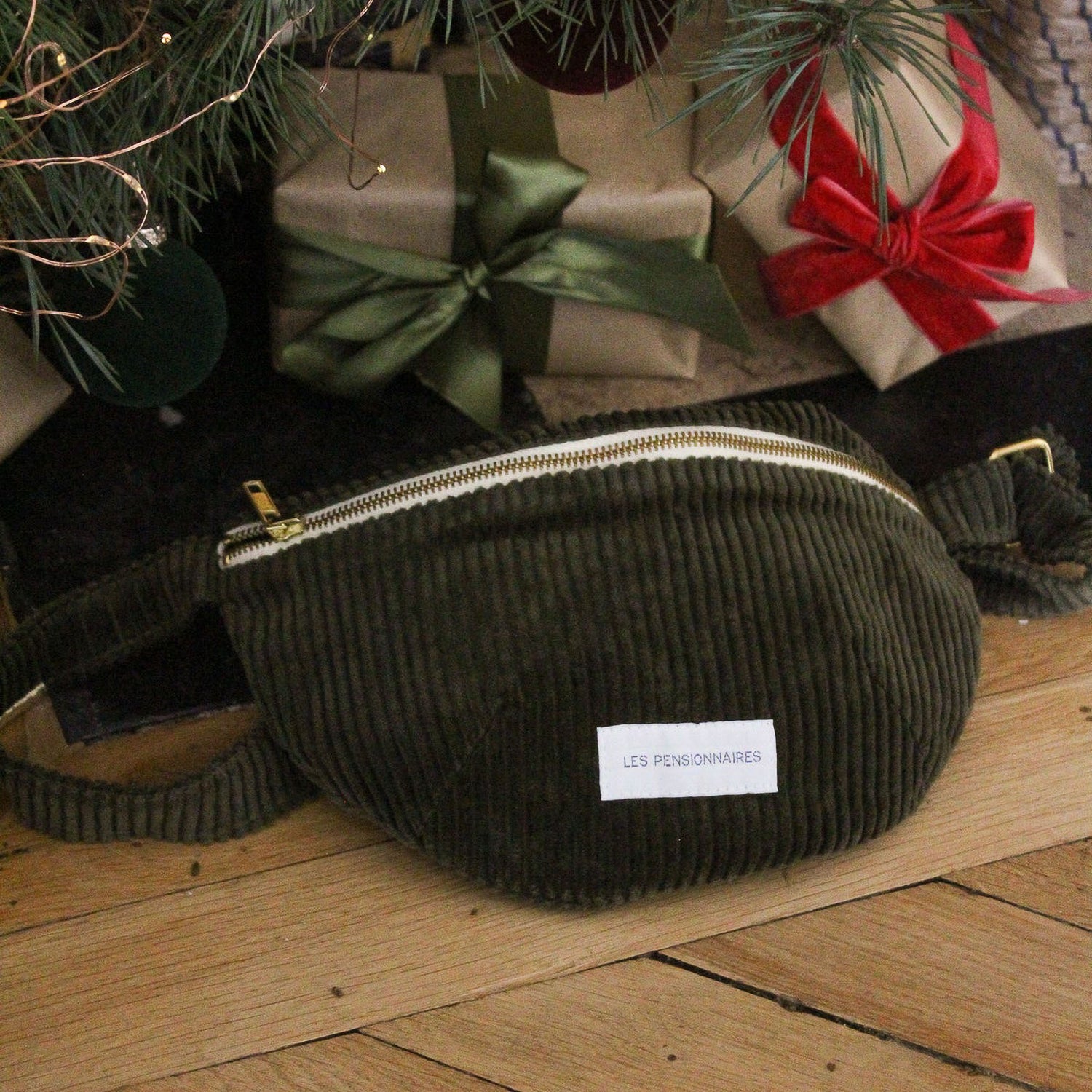 LES PENSIONNAIRES Corduroy Banana Bag in Caper Green