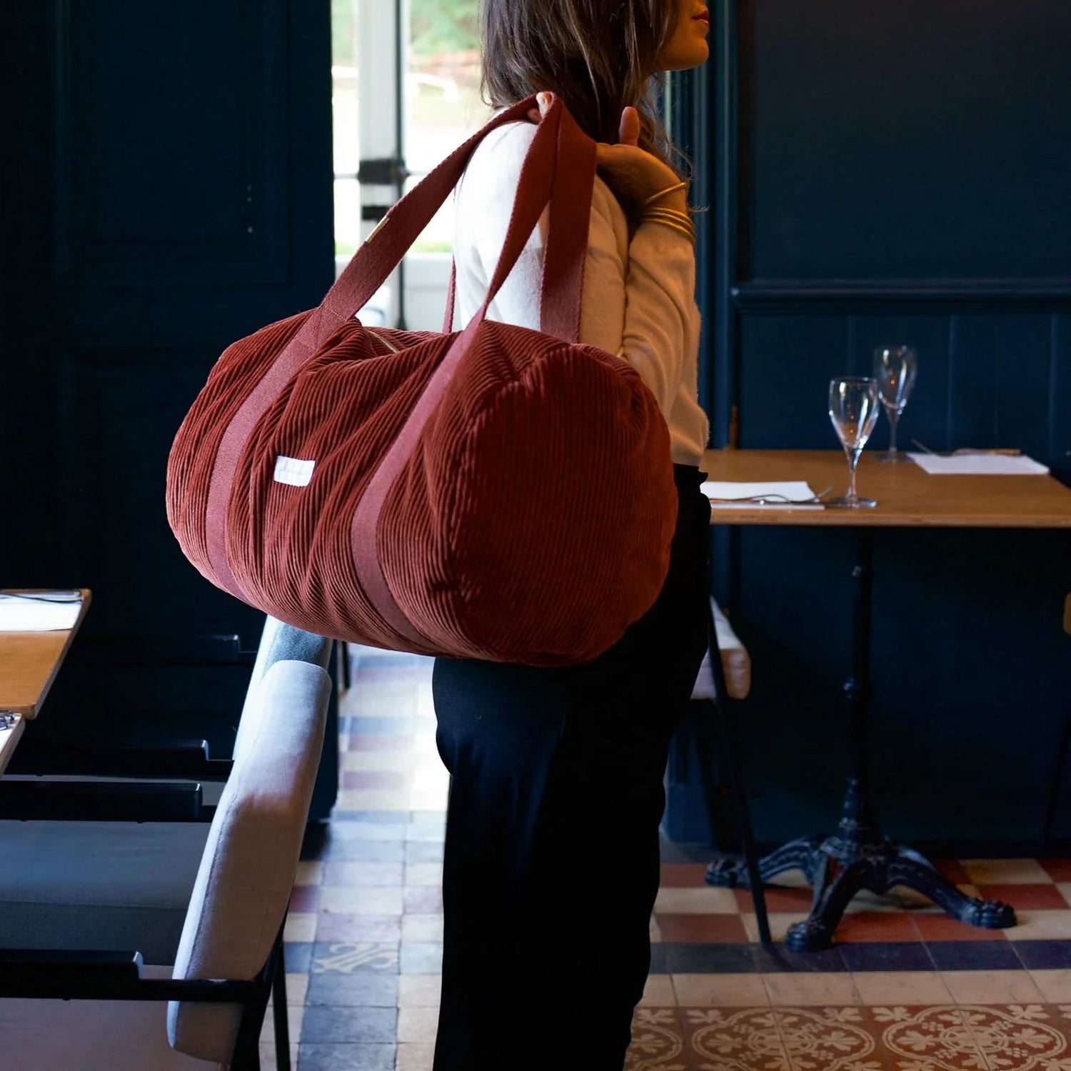 The ideal companion for short getaways and weekends away. This spacious bowling-style bag is crafted from 100% cotton corduroy and finished with a coated lining for added protection. Inside, a zipped pocket keeps your essentials secure and organised.