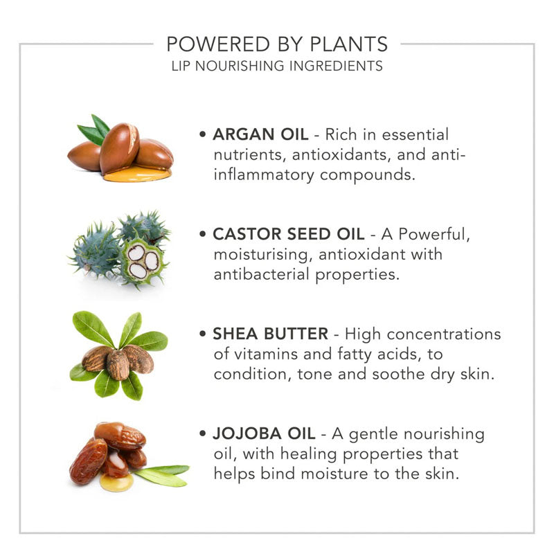 Powered by Plants with skin nourishing ingredients of argan oil, castor seed oil, shea butter and jojoba oil.