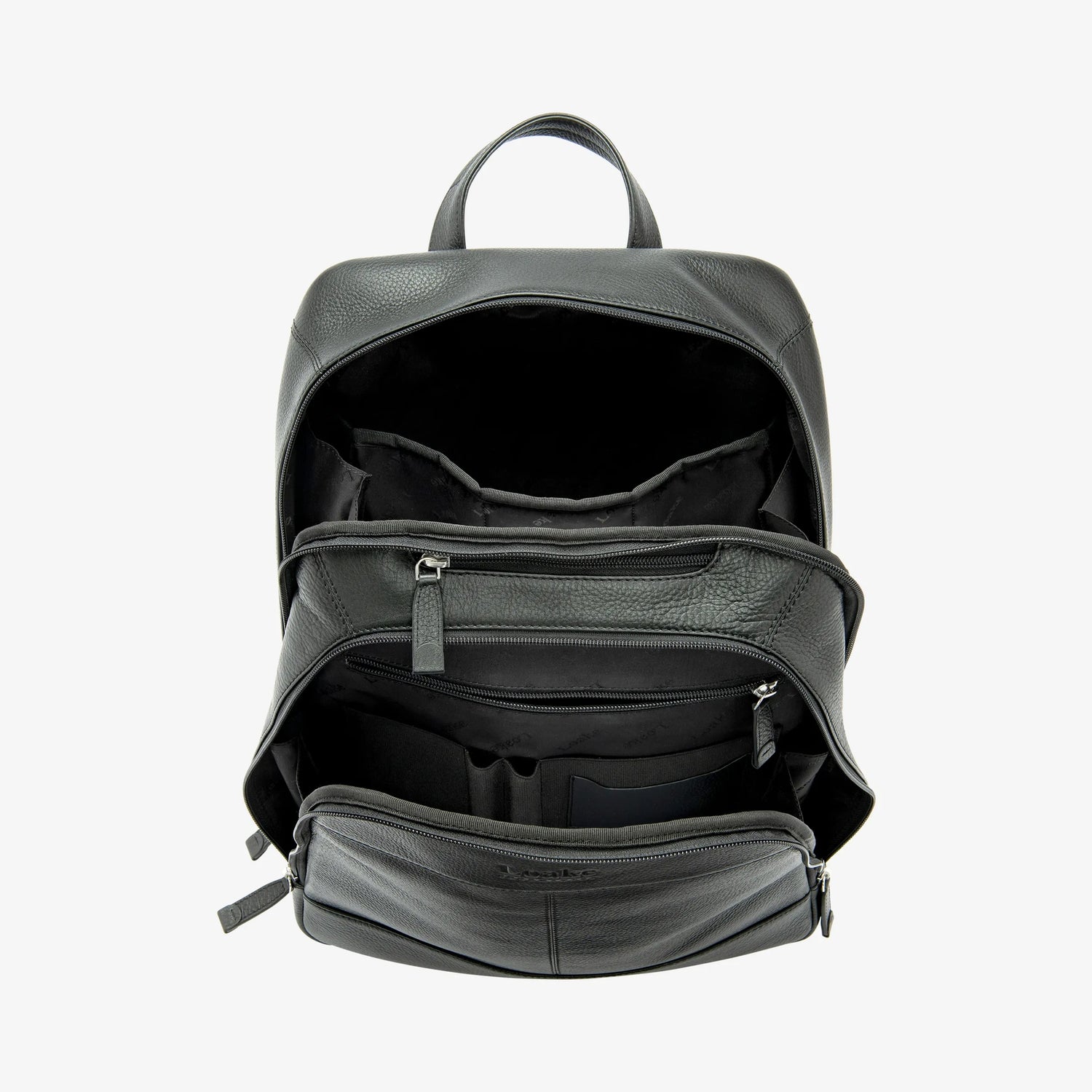 The exterior includes an anti-theft compartment, a dedicated tablet or iPad pocket, adjustable body straps, and a zip-around opening for easy access. Finished with a sturdy leather top handle, the Waterloo is a practical, stylish choice for everyday travel and commuting.