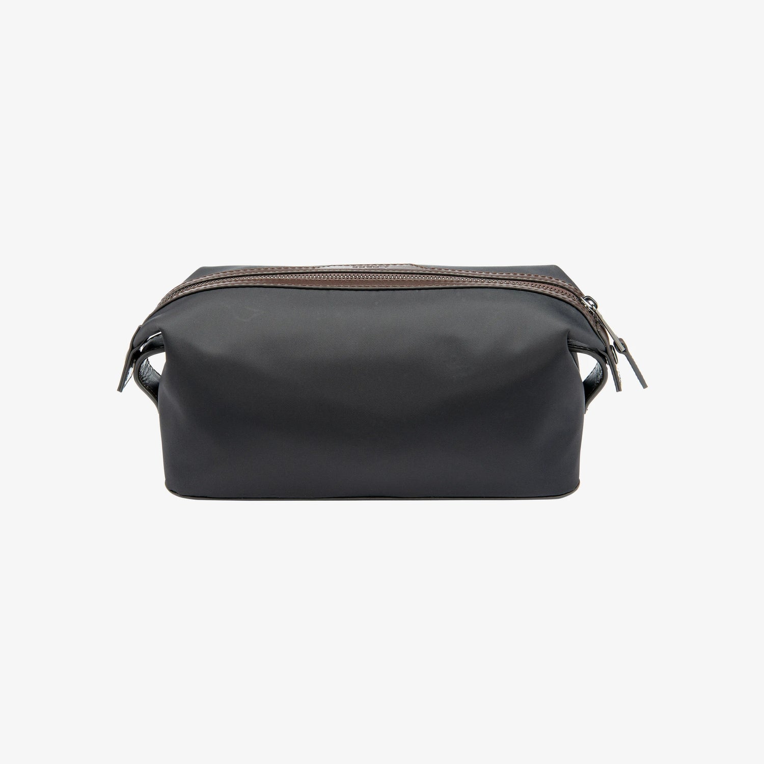 The Welland Washbag blends hard-wearing nylon with sophisticated leather detailing to create a sleek, travel-ready accessory. Thoughtfully crafted in India, it offers a roomy main compartment, an internal zip pocket for secure storage, and a detachable mini pouch fixed with side press studs for quick access when you need it. Both practical and refined, this wash bag is an effortless way to keep your grooming essentials neatly organised at home or on the go.