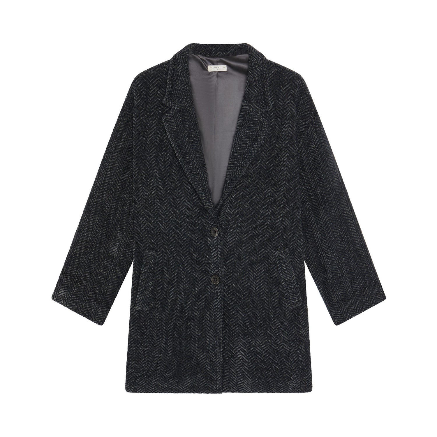 A true winter staple, the Marceau Jacket is cut in a classic longline silhouette and crafted in a timeless herringbone weave. Designed with a notched lapel collar, side pockets, and button closure, it blends structure with effortless style.