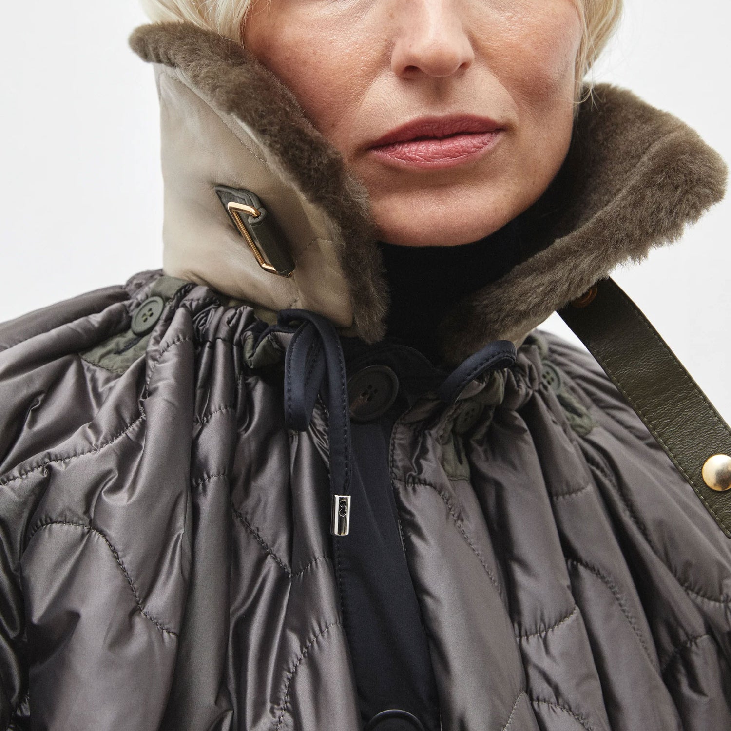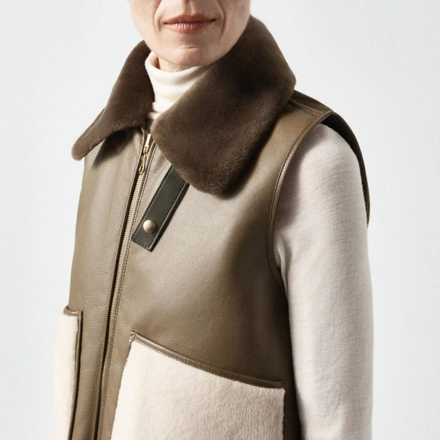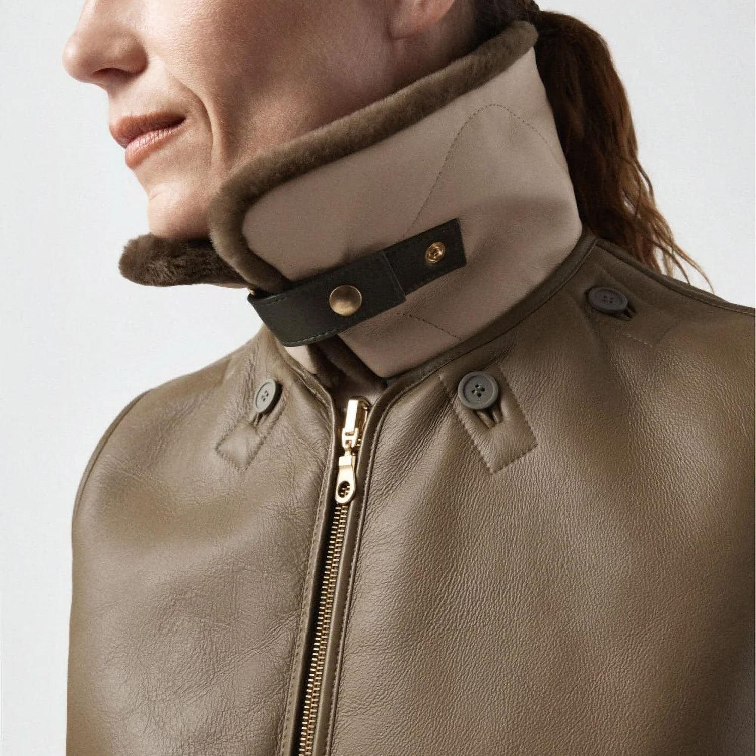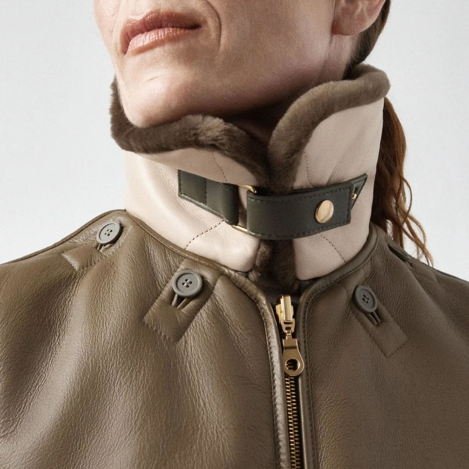 A modern twist on a vintage classic. This cool-girl accessory features the most coveted collar for year-round wear, crafted from shearling and buttery-soft Italian Nappa leather. Adjustable throat latch adds extra warmth, and it can be worn as a stand-up collar or laid flat